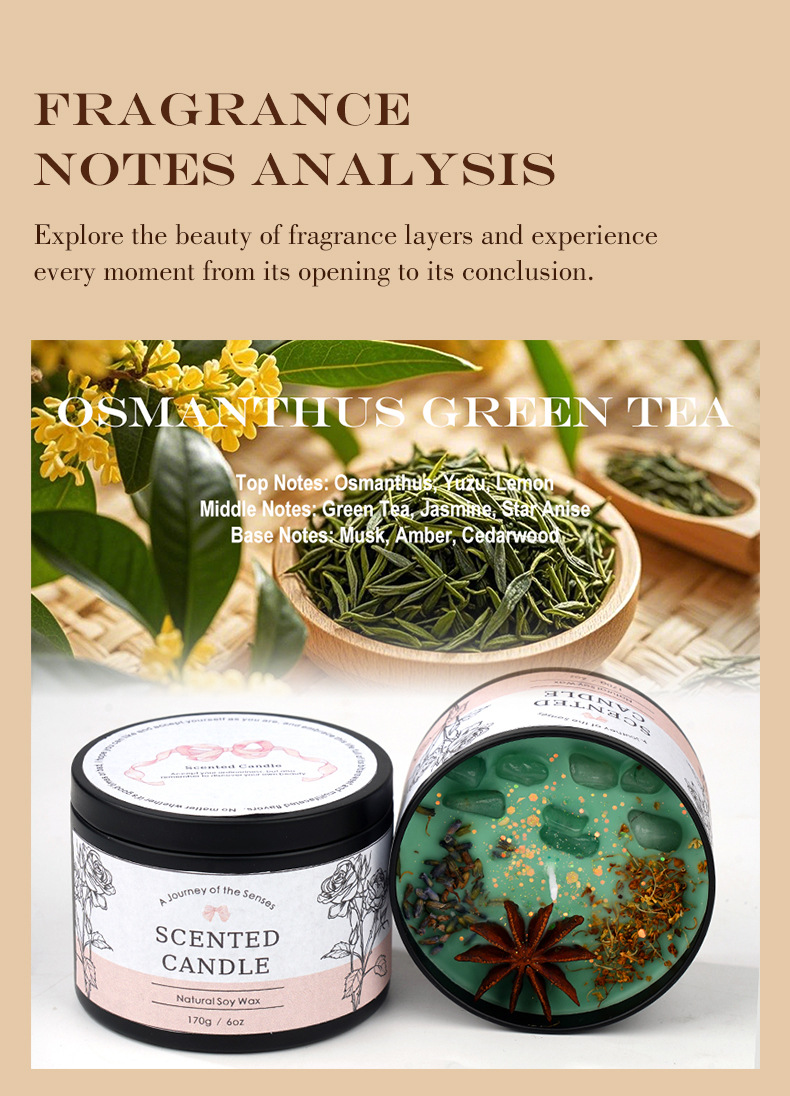Color: osmanthus green tea, rose and urde, Apple Cinnamon, French vanilla, rosemary, lavender, ylang-ylang