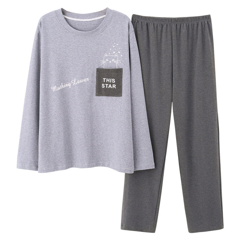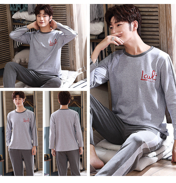 Casual Knitted Long-sleeved Round Neck Pajama Set