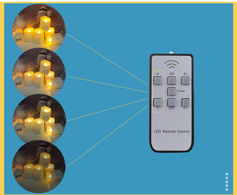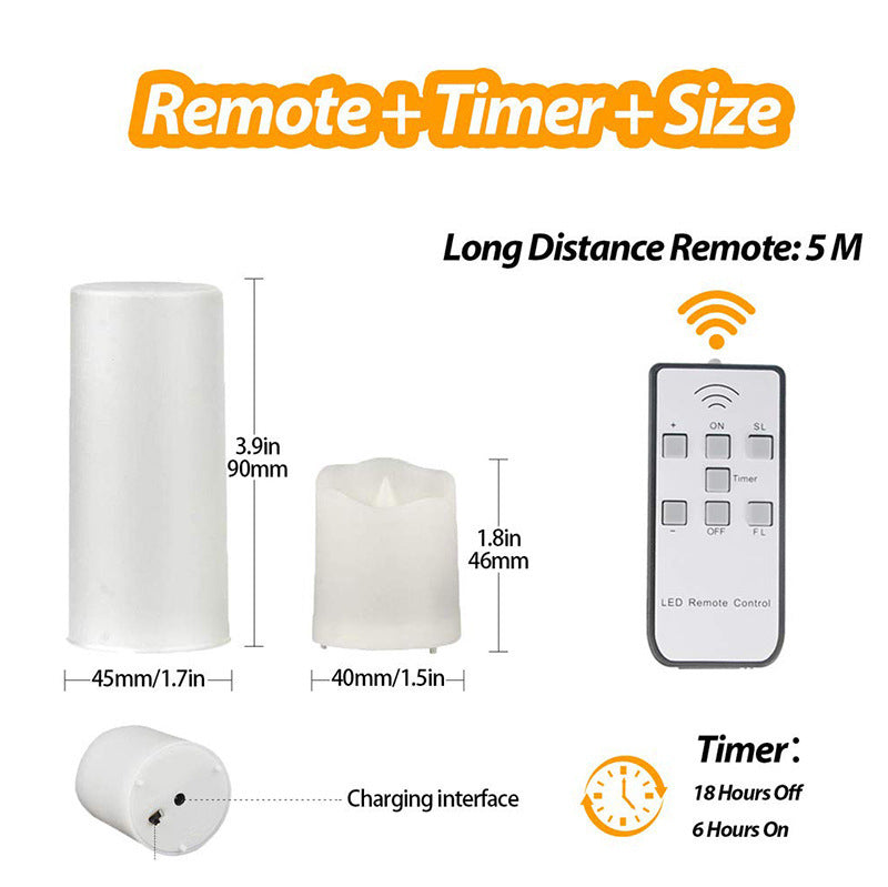 Functions: 7-key timed infrared remote control, remote control on/off, 6-hour cycle timing, increase/decrease brightness, fast/slow flash, the bottom of the candle has its own switch button, and the remote control only works when the bottom of the candle is turned on
