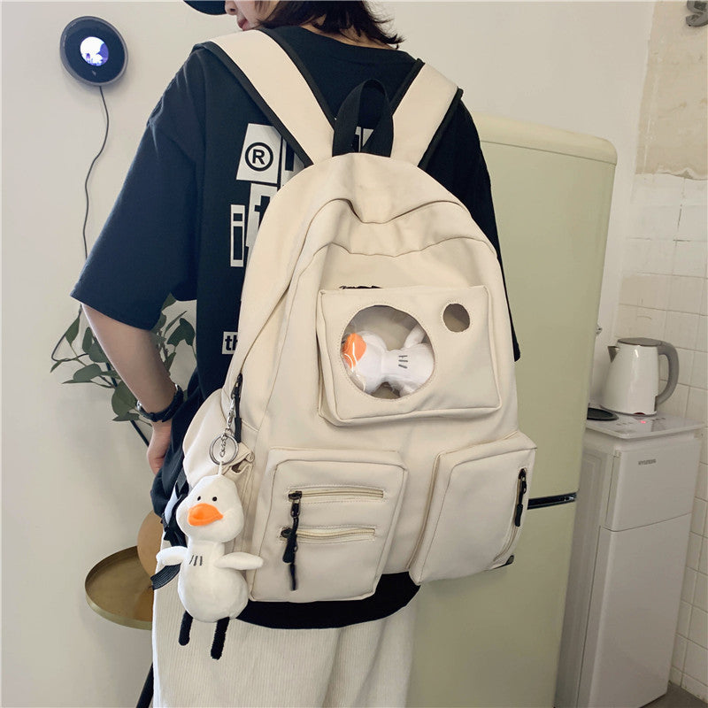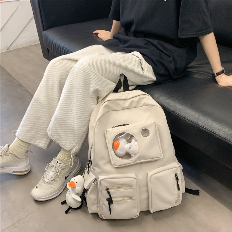 Smart organization keeps essentials in reach: a roomy main compartment with a dedicated zipper pocket and a mobile phone pocket. The breathable, waterproof design helps protect contents in changing weather, while the soft top handle and air-cushion double straps provide all-day comfort. The plain pattern and square vertical silhouette offer a versatile, minimalist look—perfect for school, work, or travel.