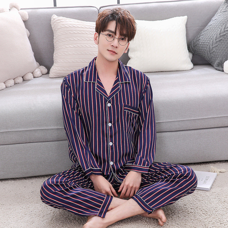 Imitation Silk Couple Pajamas Striped Ladies And Mens Silk Home Service Korean Style Lapel Thin Suit