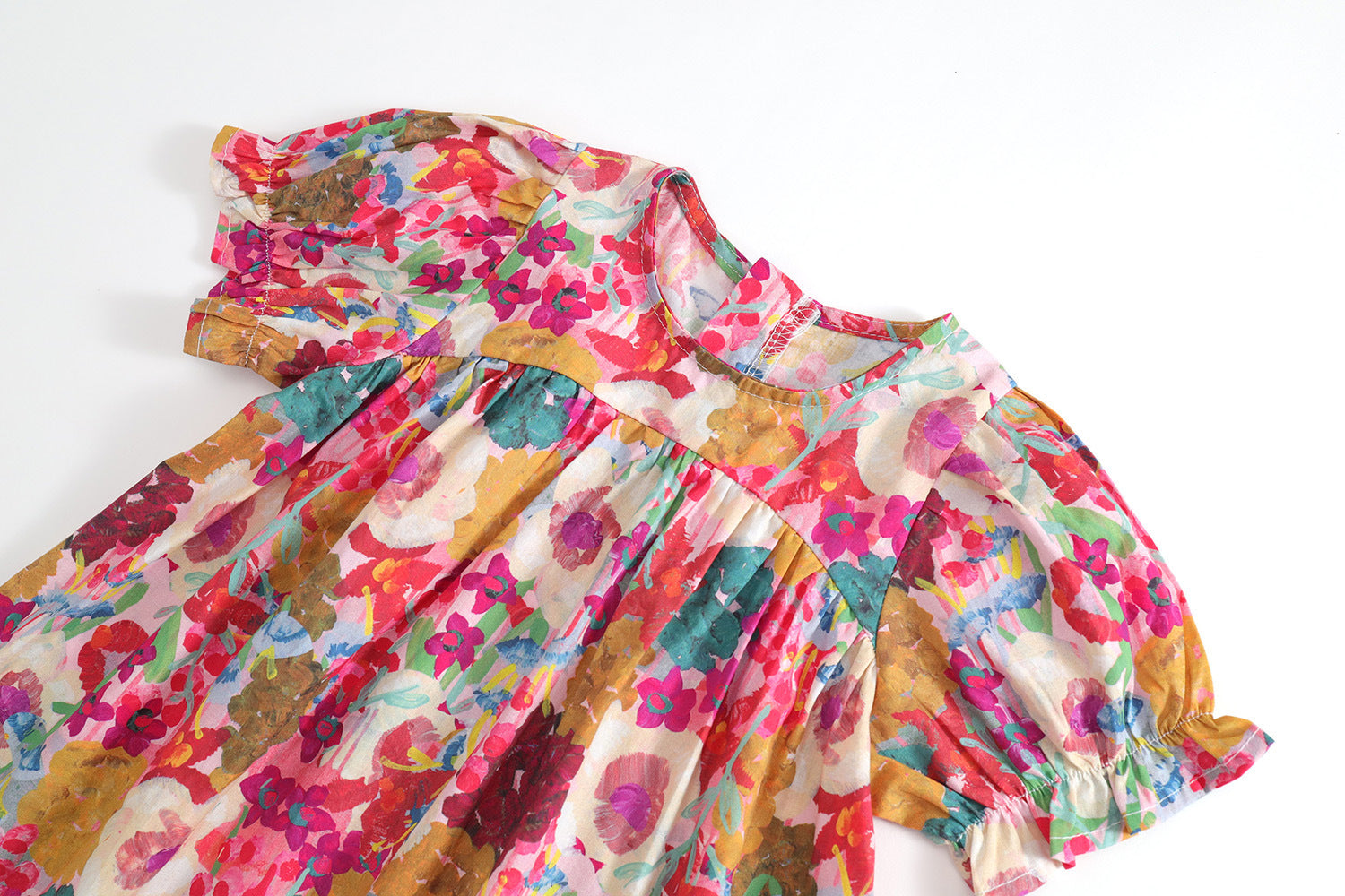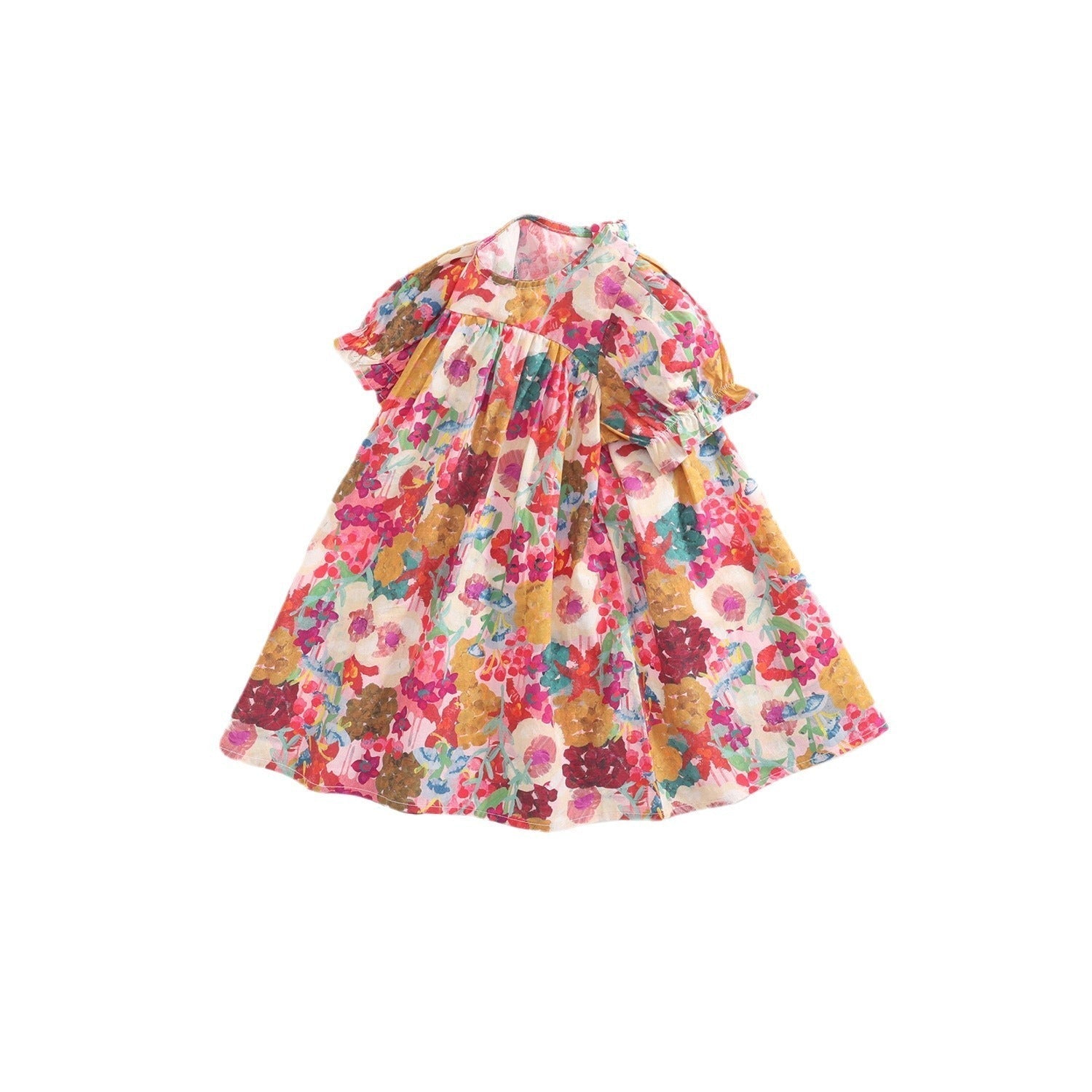 Made from soft cotton, this classic floral dress features puff sleeves and a cute skirt for a timeless princess look. It’s ideal for holidays, parties, and photo moments, offering comfort all day long.