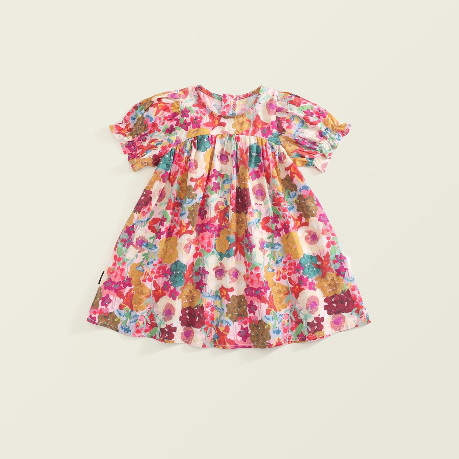 Girls Floral Princess Puff Sleeve Cotton Holiday Dress