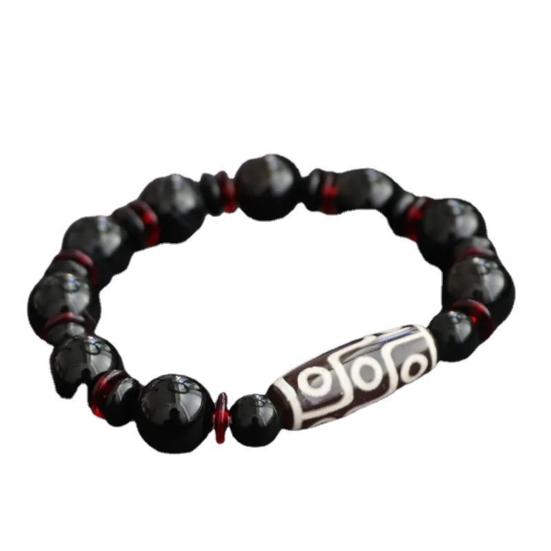 Unisex Dzi Bead Black Agate Chalcedony Bracelet Style