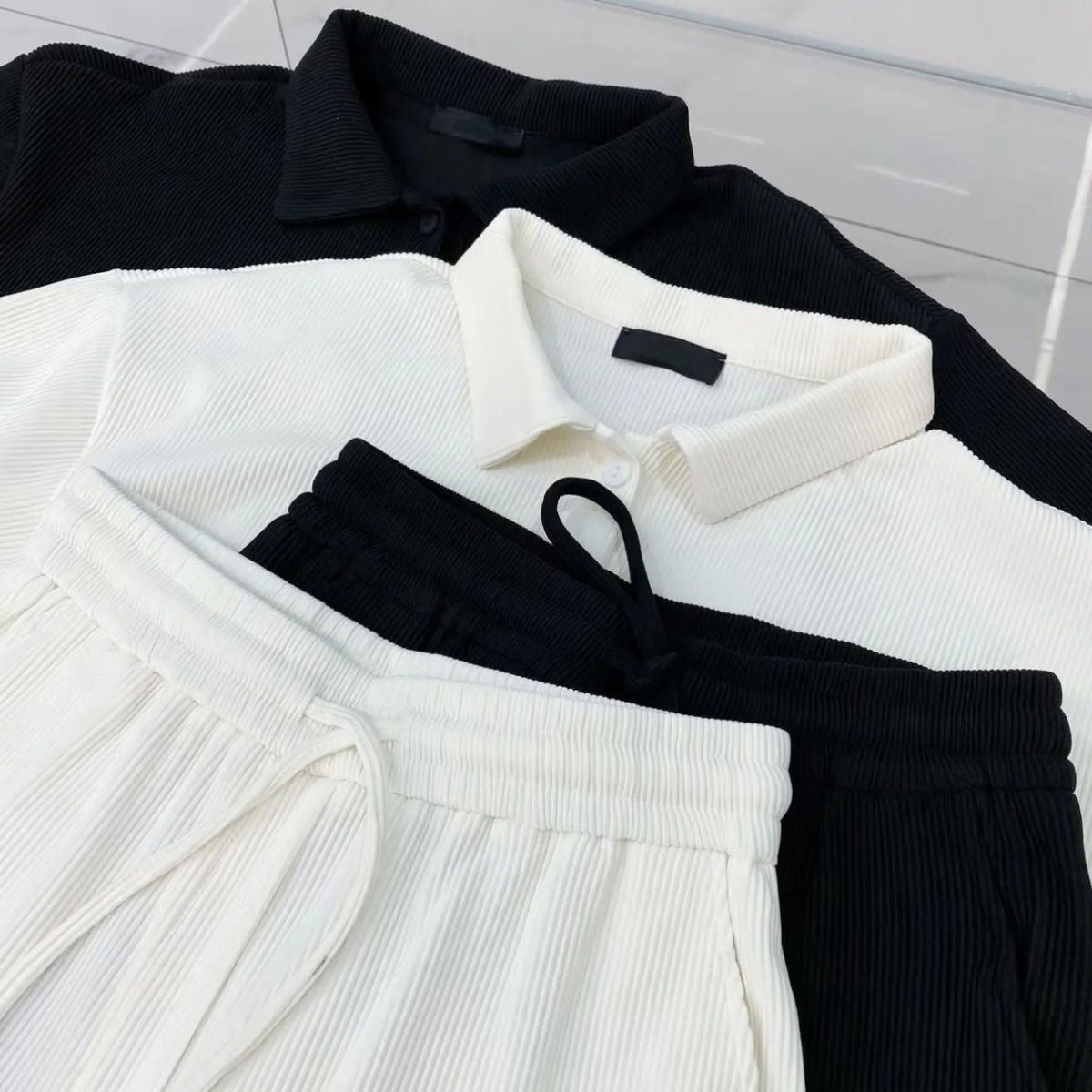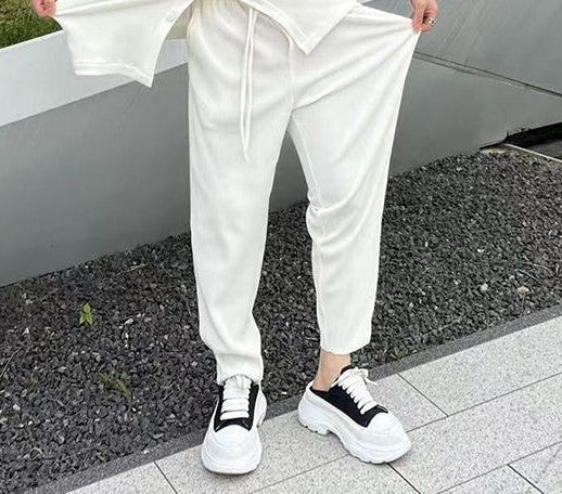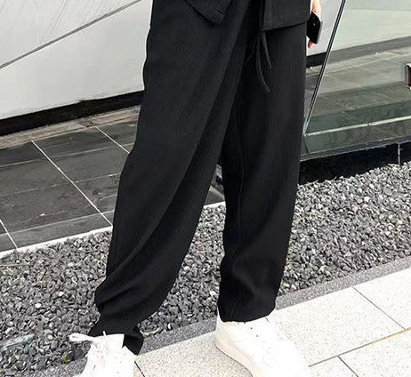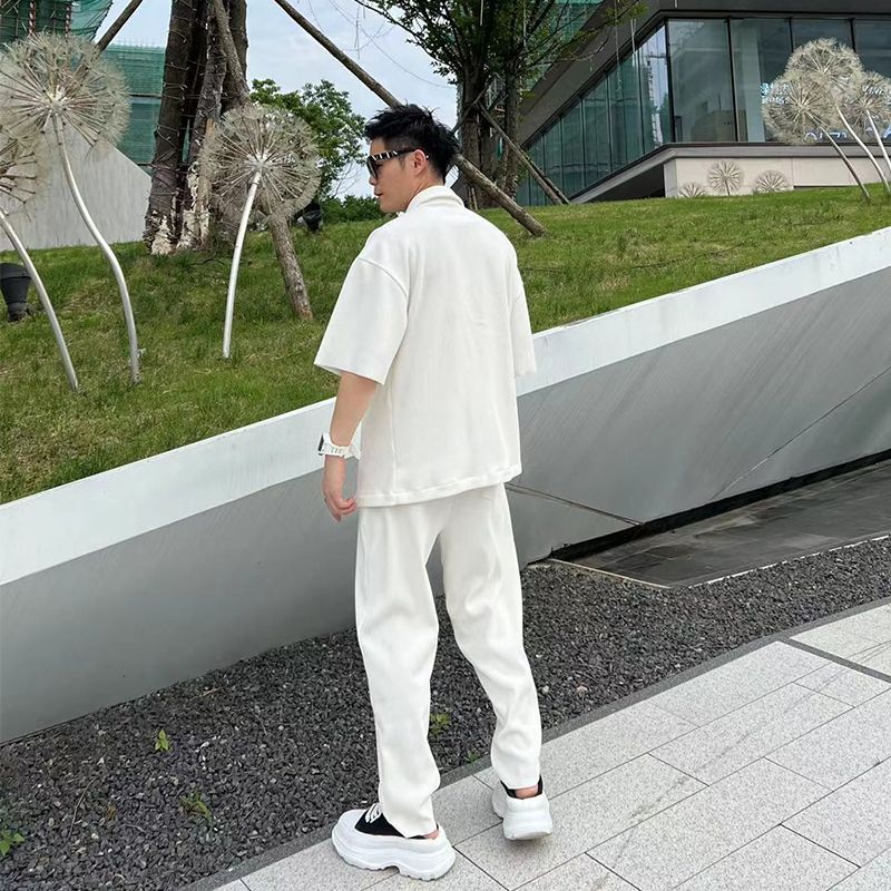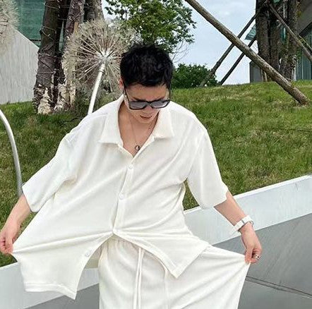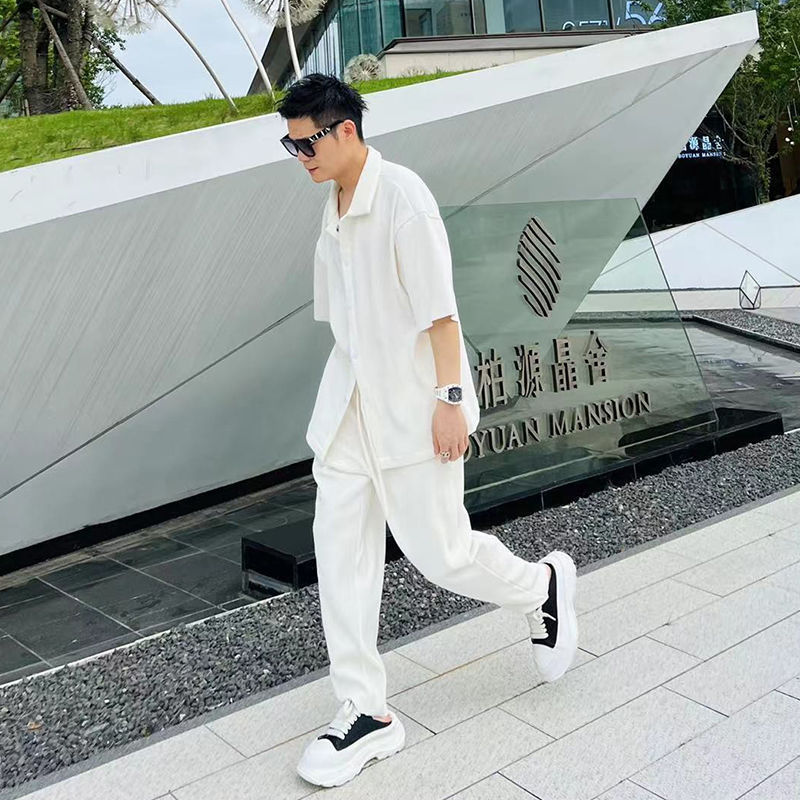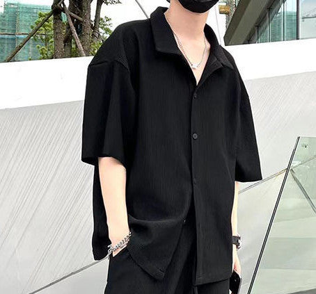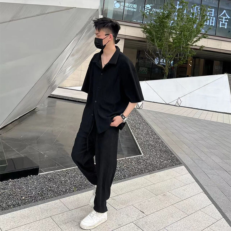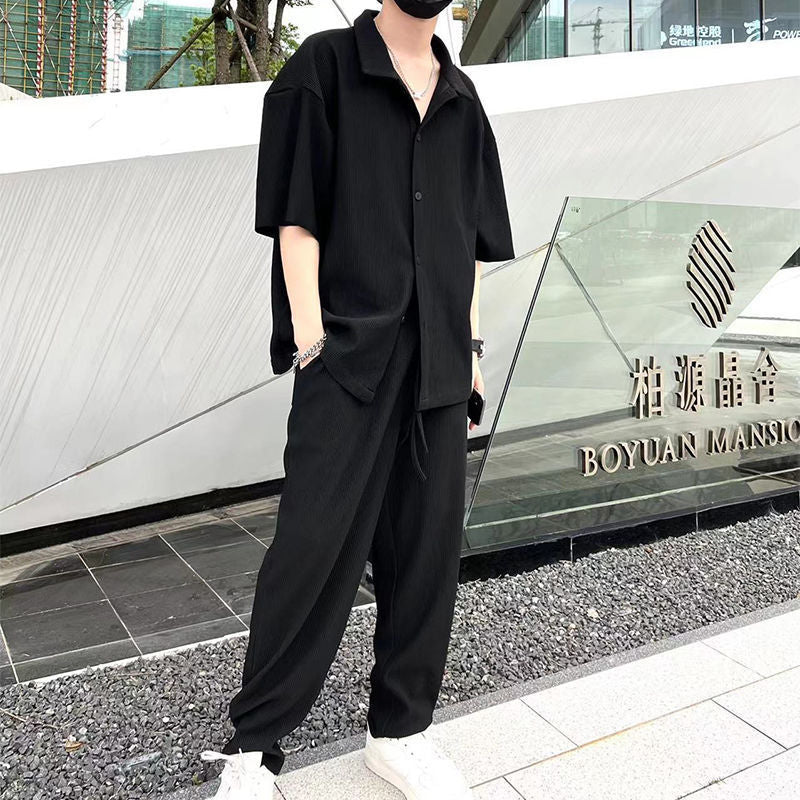 Men's Fashion Casual Loose Pleated Texture Shirt And Trousers Two-piece Set