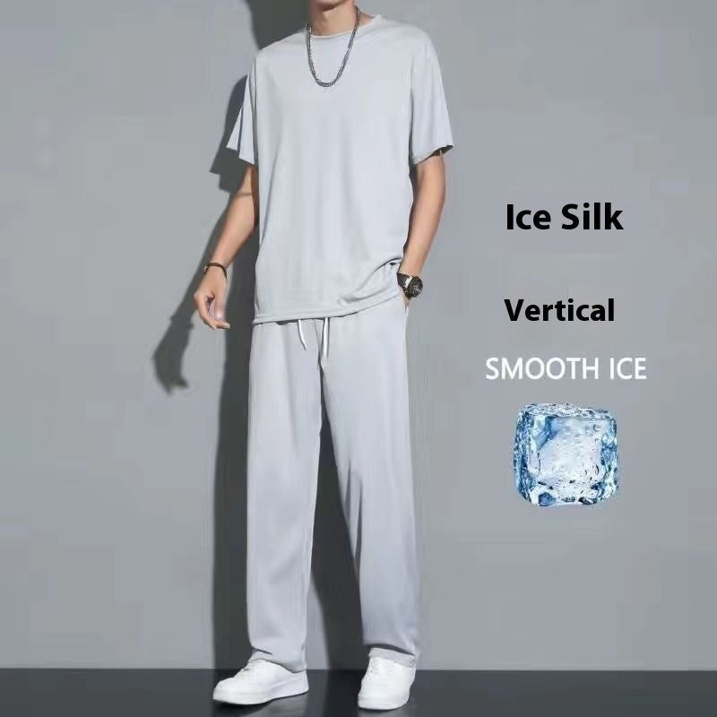 Quick-drying Ice Silk Breathable Suit Men's Short-sleeved T-shirt Trousers Sports Two-piece Set