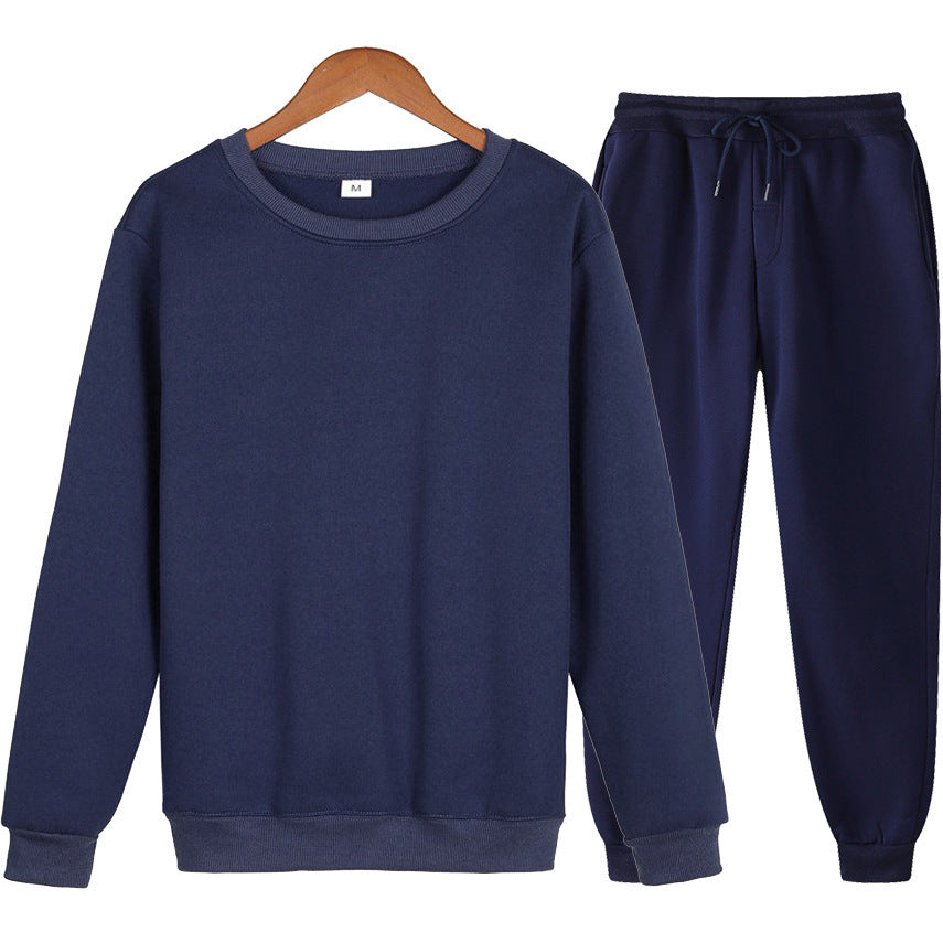 Solid Color Loose Trendy Round Neck Autumn Winter Sweater Suit Men