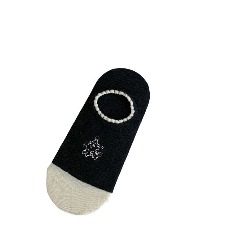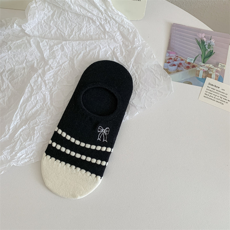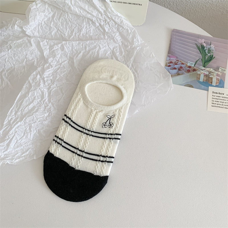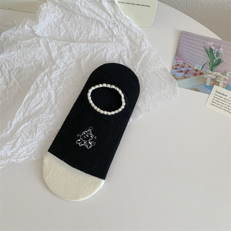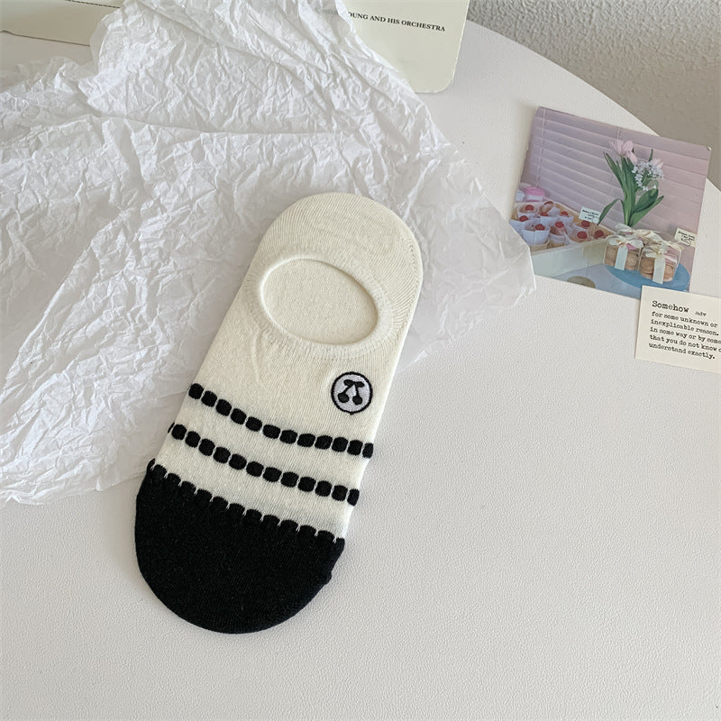 Black And White Cute Bubble Mouth Women's Low-cut Liners Socks Invisible