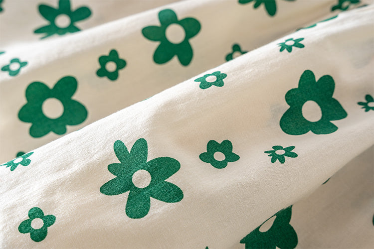 In a fresh green palette, the dress features a floral print and a twirl-worthy pleated skirt for a timeless princess silhouette. The breathable cotton fabric ensures all-day comfort during adventures, while the regular fit supports easy movement. Machine washable for easy care and quick drying.