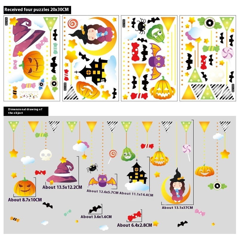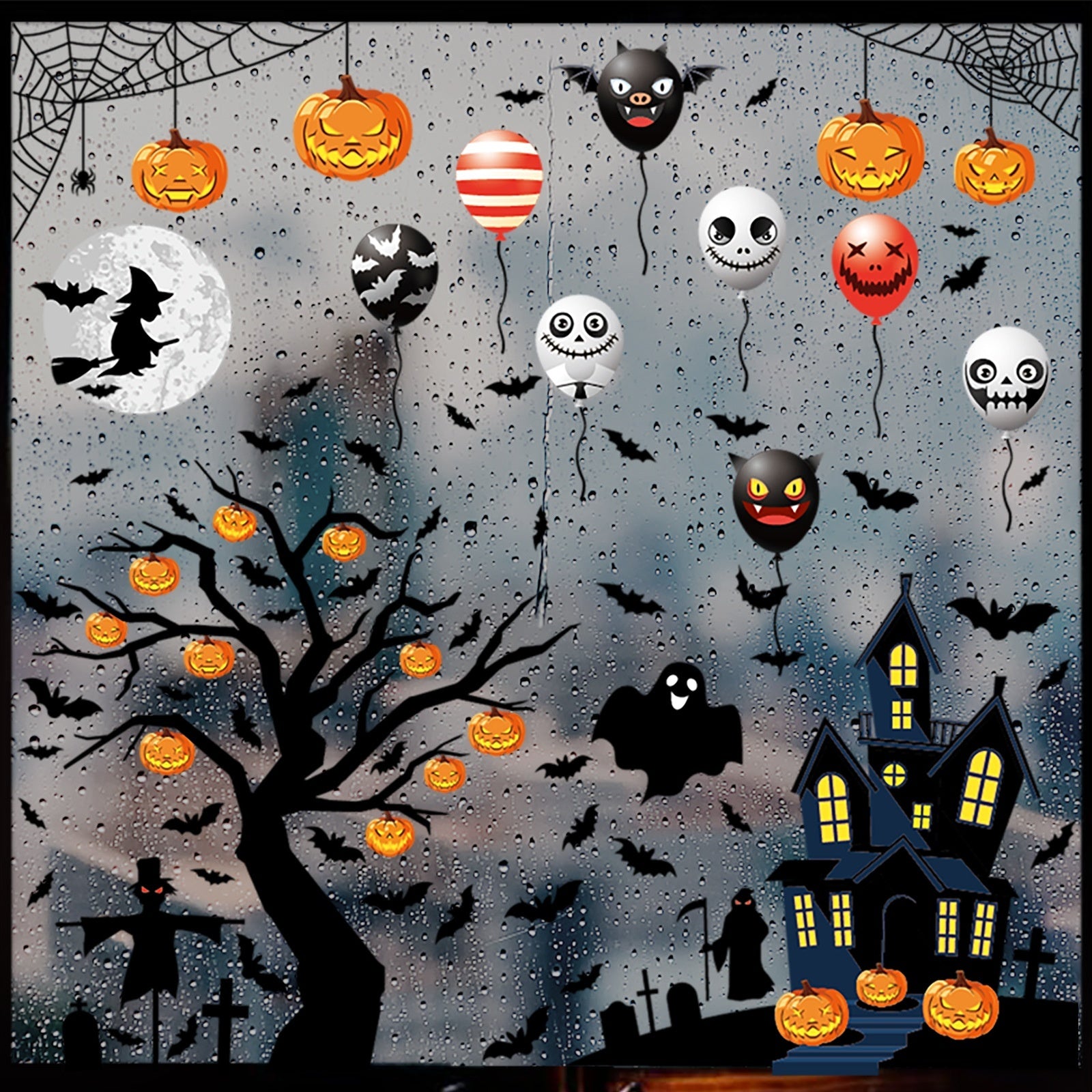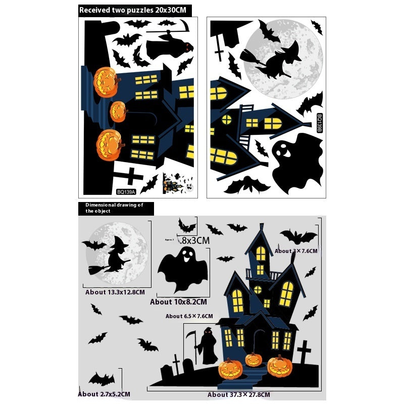 Halloween Decoration Haunted House Sticker Witch Ghost Bat Window Stickers