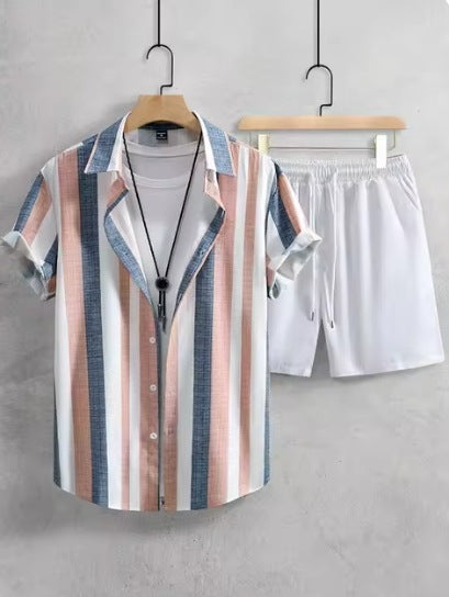 Casual Simple Lapel Short-sleeved Shirt And Shorts Two-piece Set