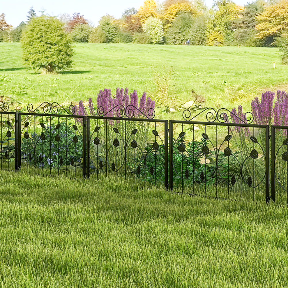 The metal garden fence adopts convenient interlocking panels, which allow for easy connection while making it flexible to adjust the angle. Besides, it is equipped with sharp bottom legs, allowing you to easily hammer the fence into the ground. More than that, it requires no digging, and thus would not hurt your flowers and plants.