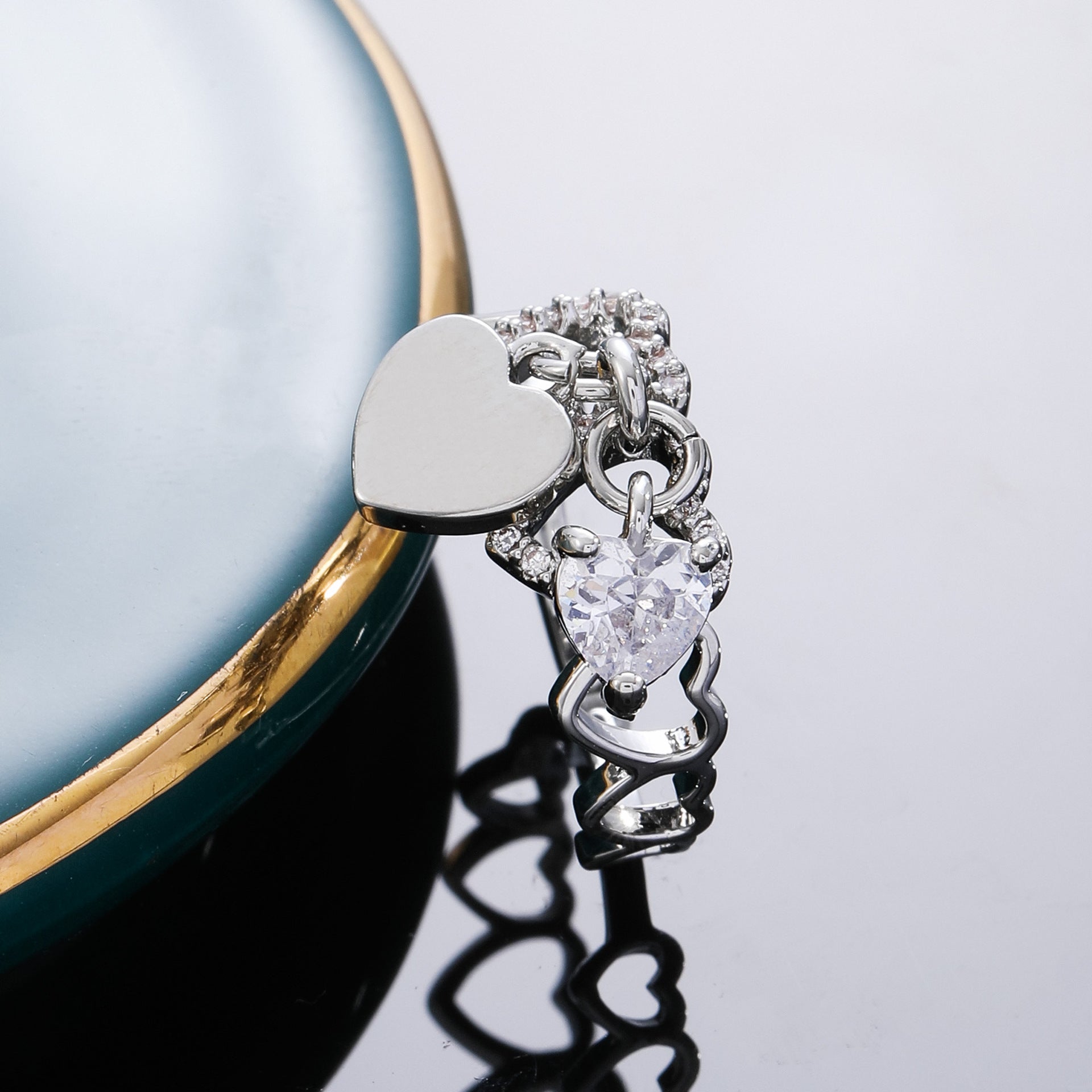 Exquisite Refined Grace Design Love Heart-shaped Diamond Shiny Open Ring