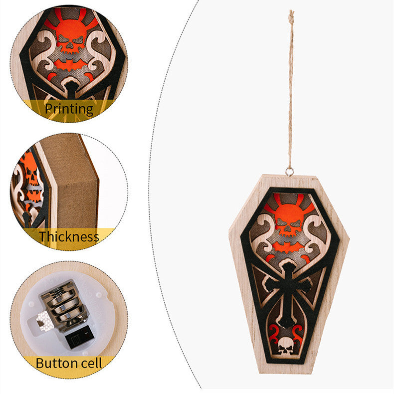 Halloween Decorations Ghost Festival With Lights Wooden Pendant