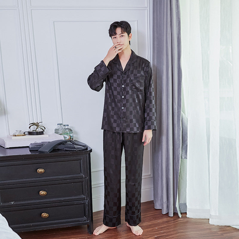 Men's Imitation Silk Spot Thin Pajamas Dad Home Service