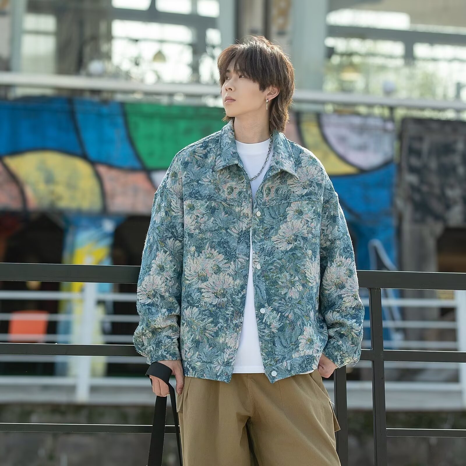 The Vintage Relaxed Fit Floral Embroidery Polyester Mens Jacket stands out with classic charm and modern comfort. In blue and yellow, it features intricate floral embroidery on durable polyester, delivering a refined, casual look. The relaxed, loose fit allows easy layering over tees or sweaters for year-round wear.