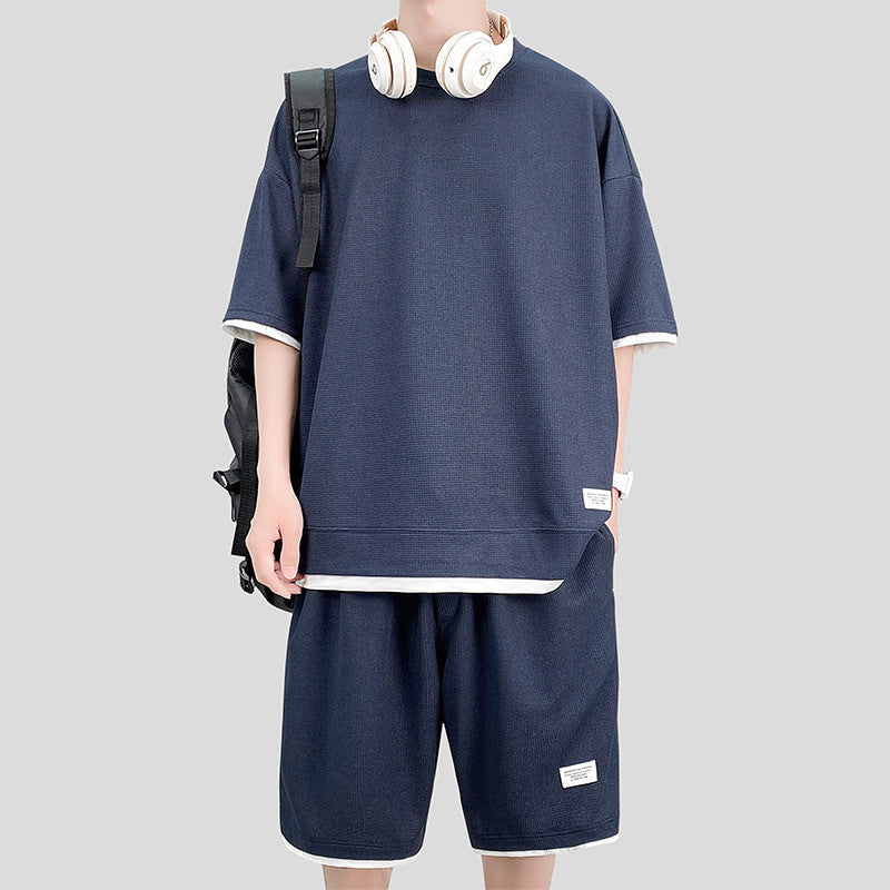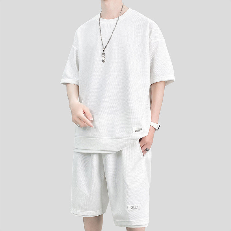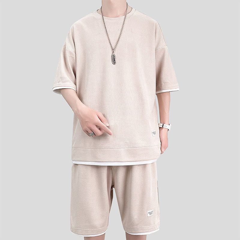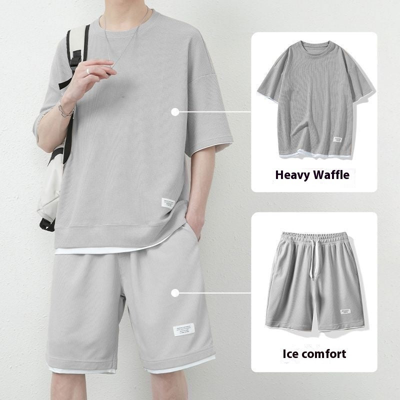Waffle Sports Suit Men's Top And Shorts Two-piece Set