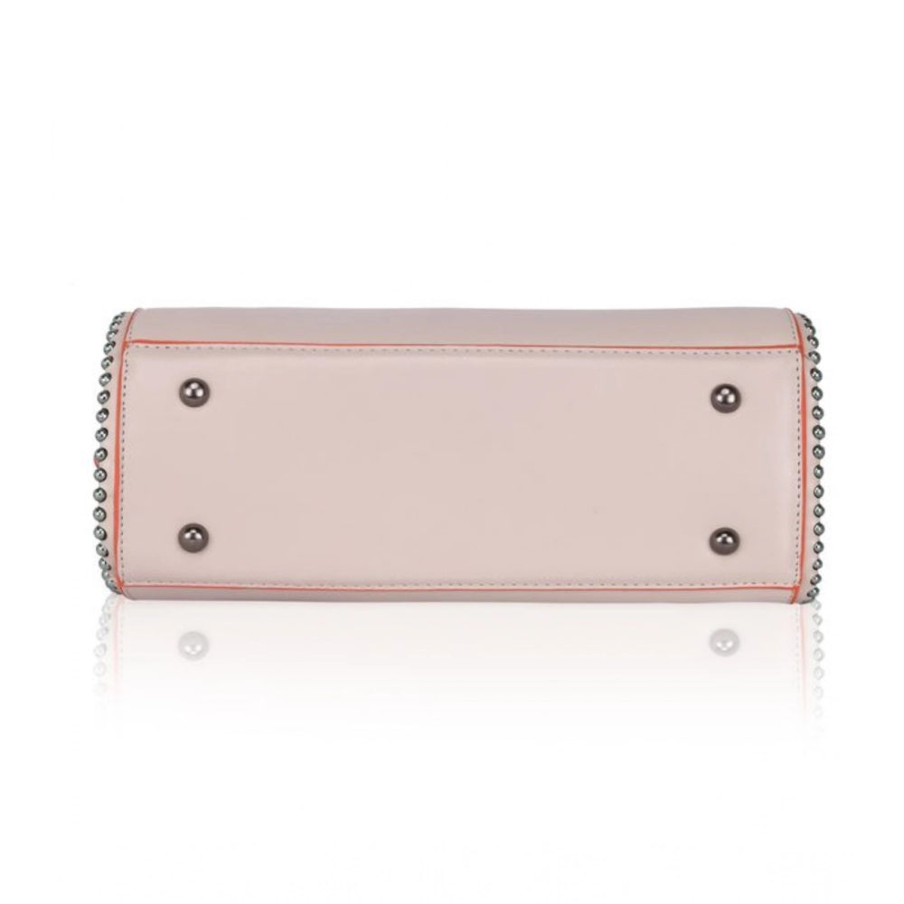 Women’s Faux Leather Handbag – Metal Beads Accent, Khaki