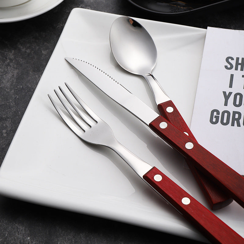 304 Stainless Steel Western Cutlery Set With Wood Handles