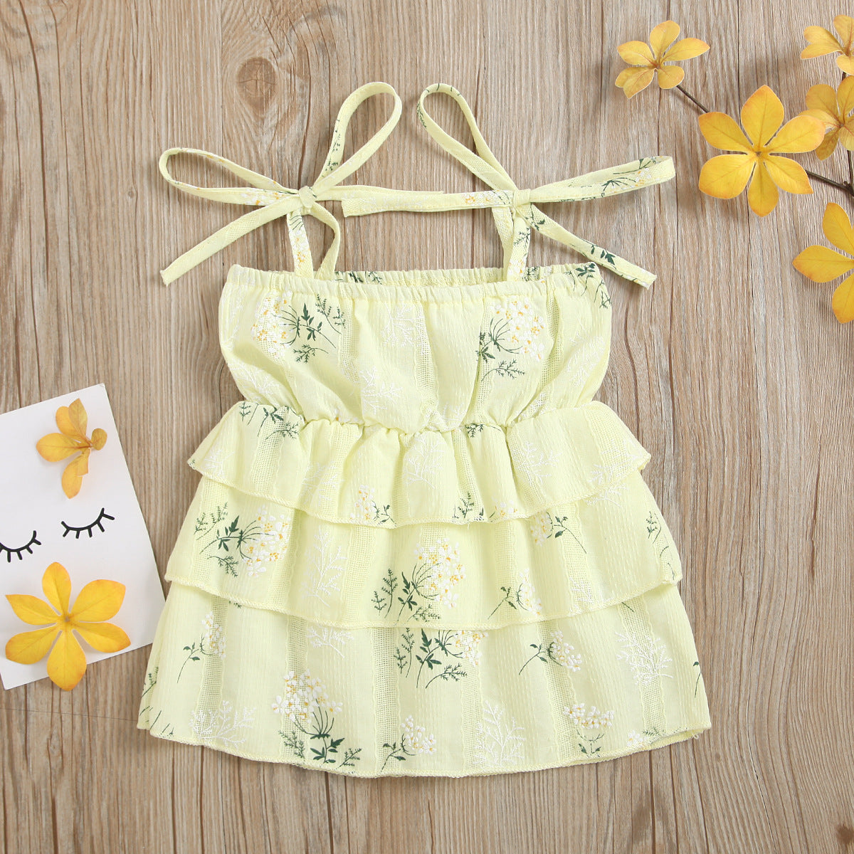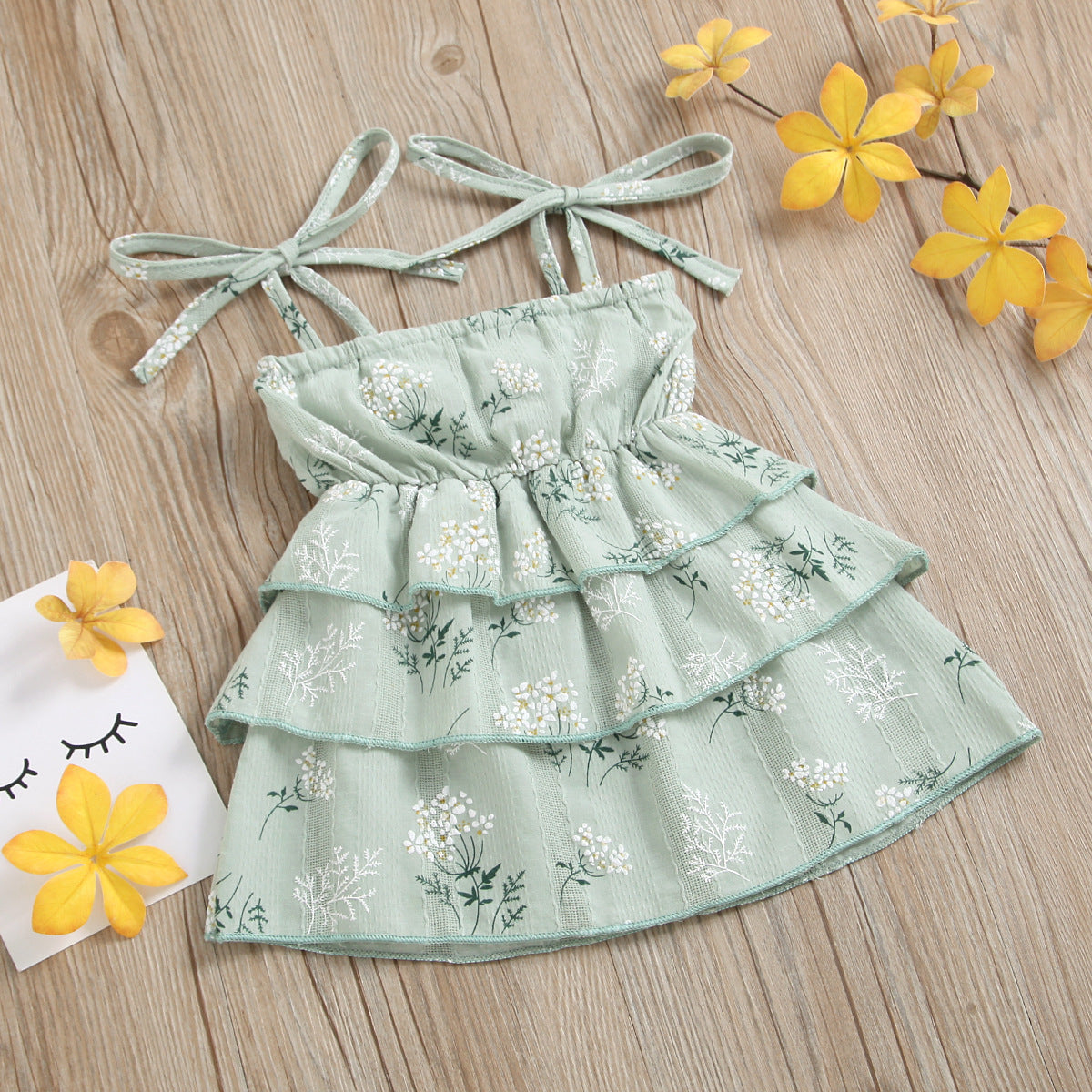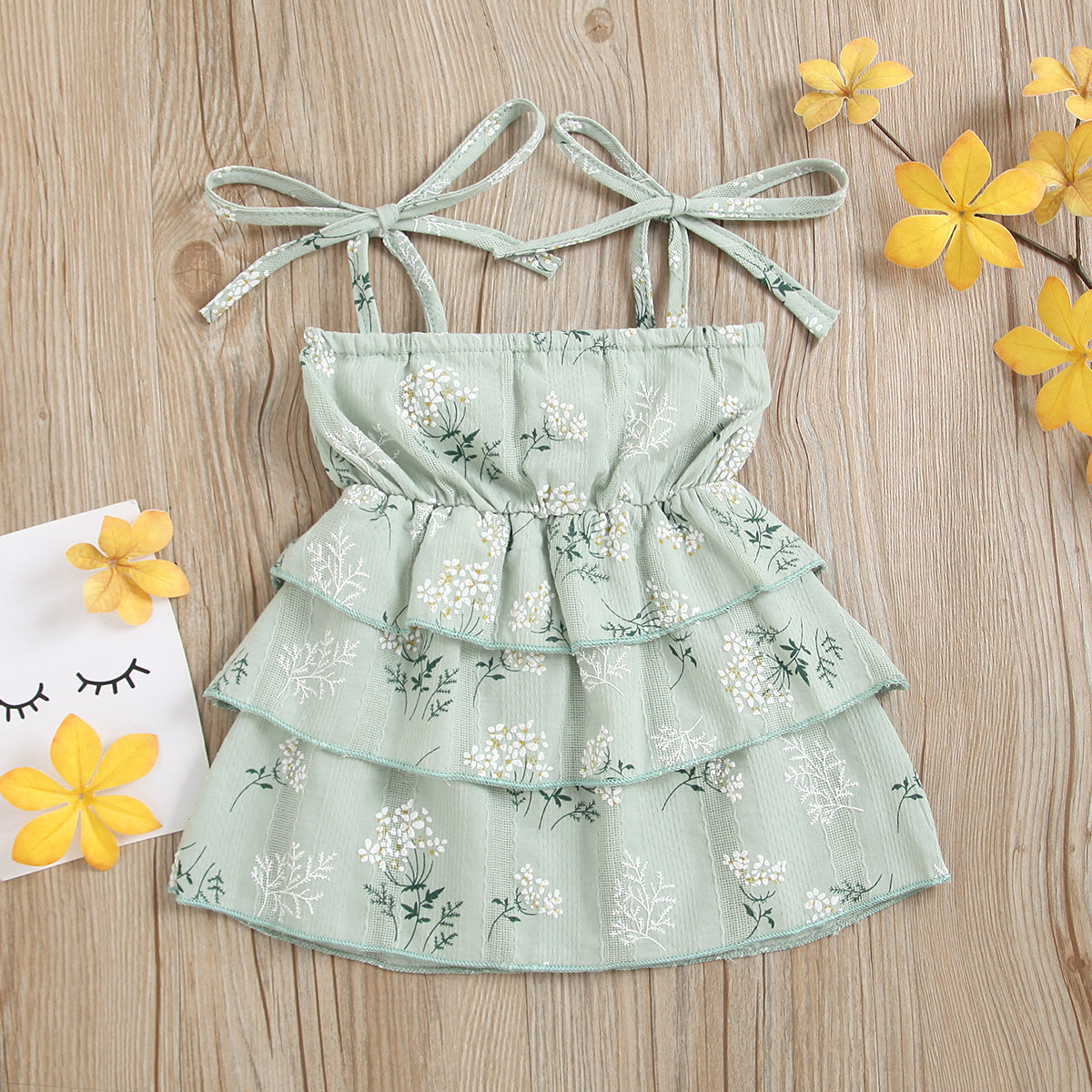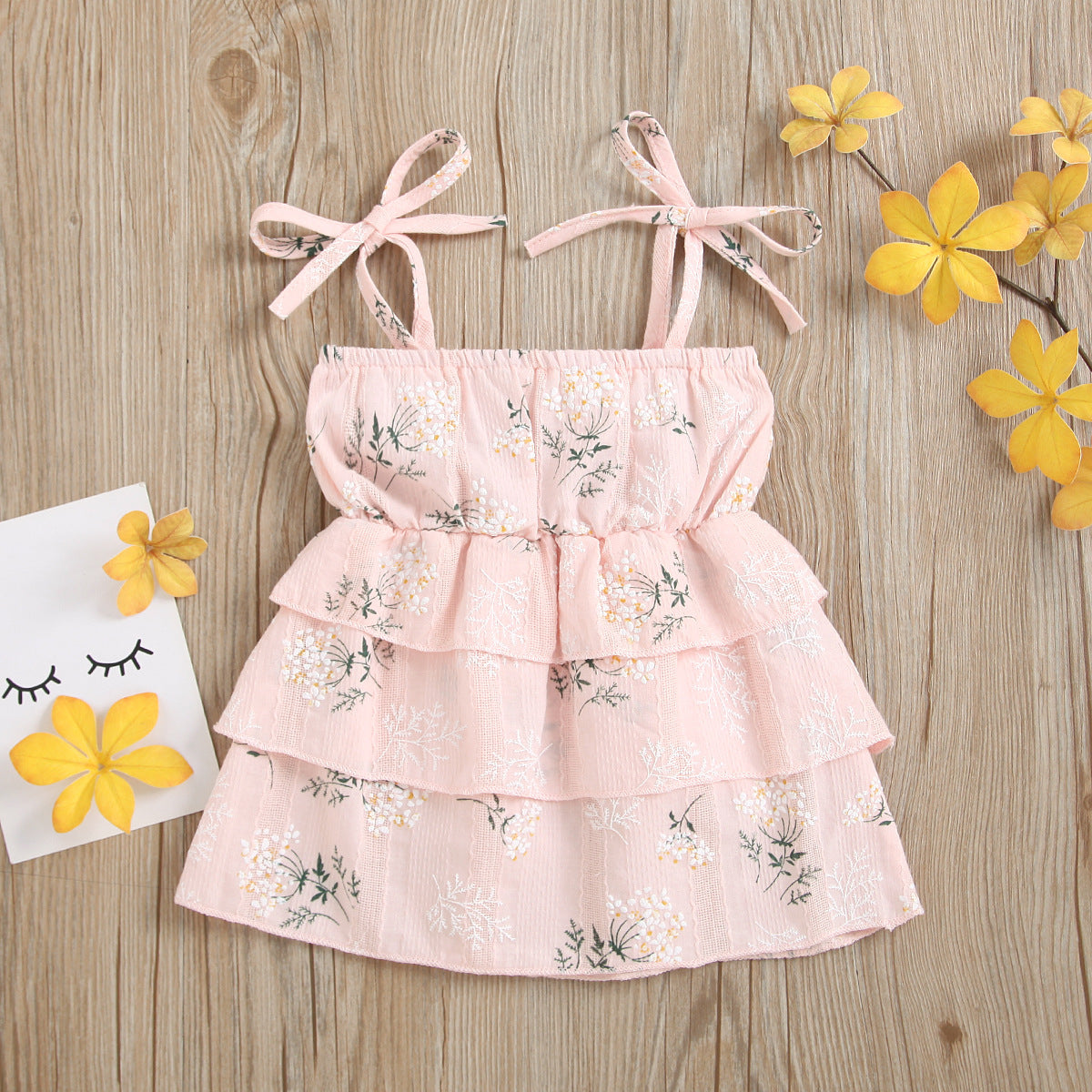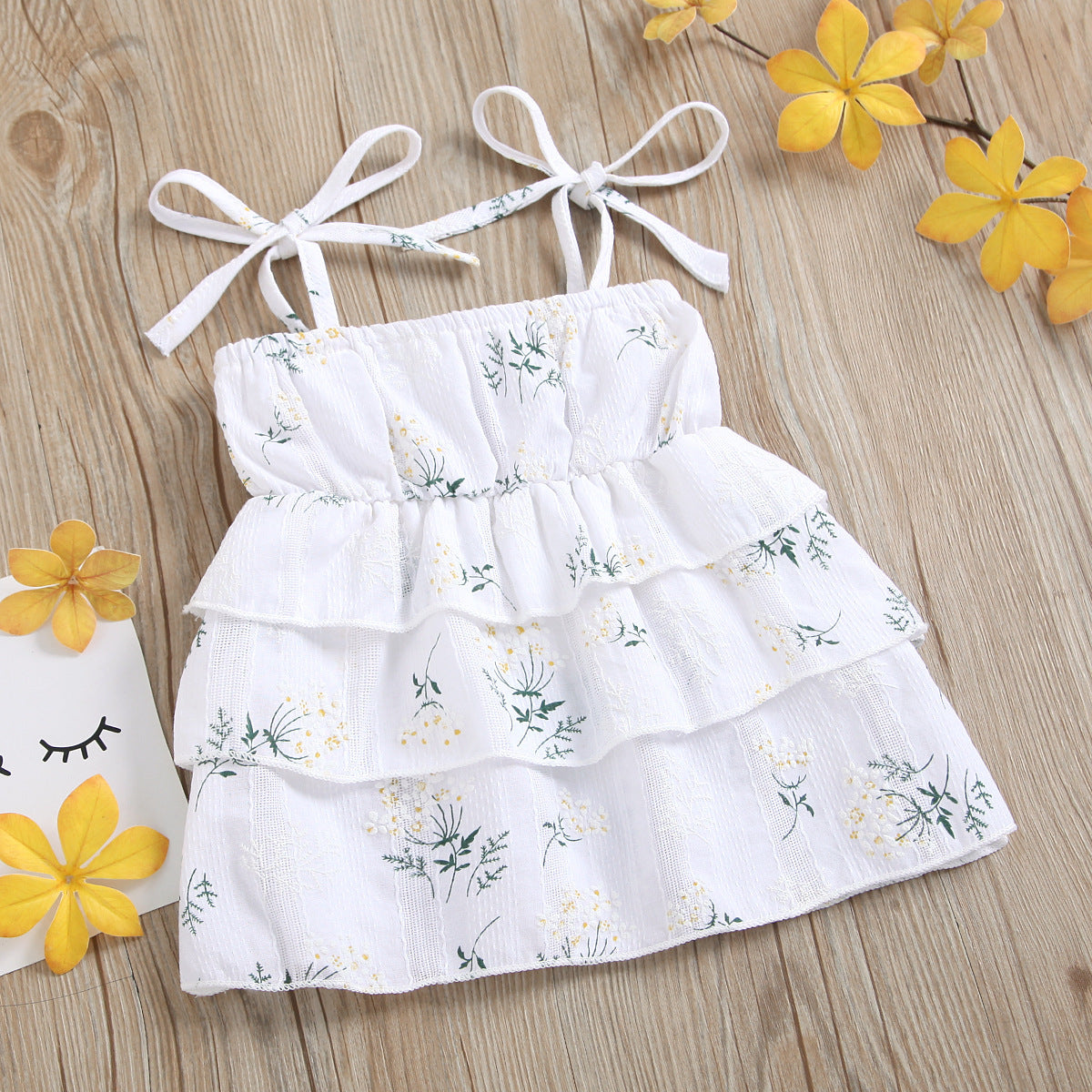 Girls Cotton Dress Casual Sleeveless Flower Strap Cake