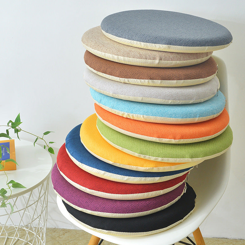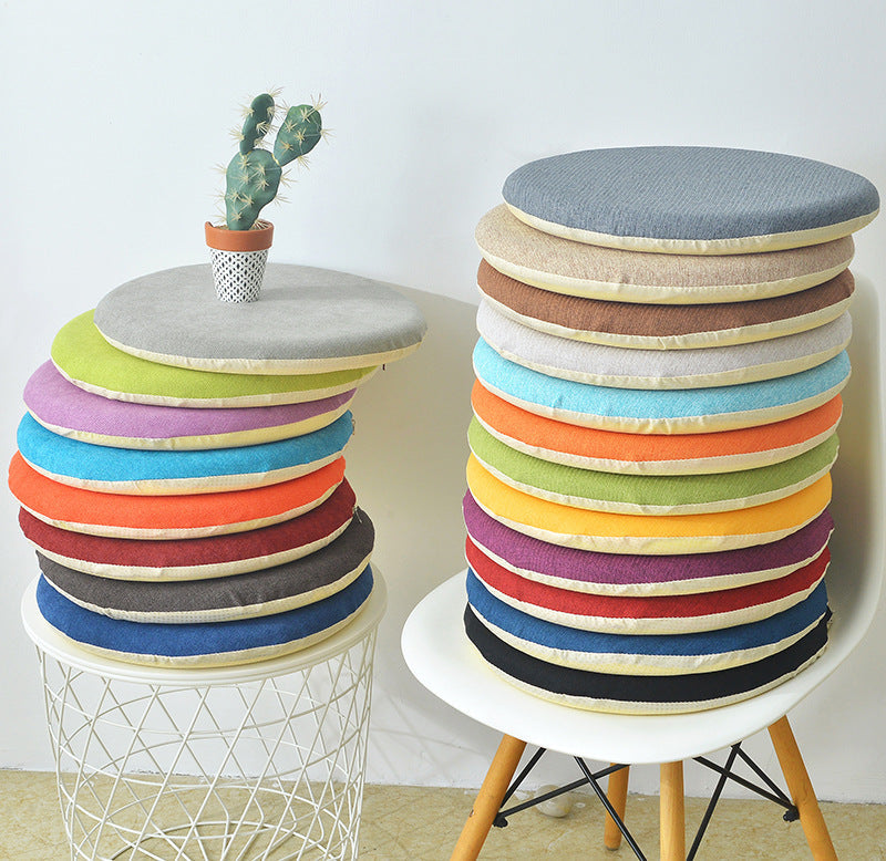Crafted with a premium linen blend, it arrives in a wide palette of color options, including Cotton Linen-Indigo, Cotton Linen-Bean Green, Cotton Linen-Black, Cotton Linen-Golden, Cotton Linen-Orange, Cotton Linen-Coffee, Cotton Linen-Light Gray, Cotton Linen-Light Coffee, Cotton Linen-Dark Gray, Cotton Linen-Sky Blue, Cotton Linen-Carmine, Cotton Linen-Purple, Ice Snow Velvet-Grass Green, Ice Snow Velvet-Lake Blue, Ice Snow Velvet-Gray, Ice Snow Velvet-Wine Red, Ice Snow Velvet-Orange, Ice Snow Velvet-Light Purple, Ice velvet-dark coffee, and Ice velvet-dark blue. Available in 40 cm or 45 cm diameter to fit most chairs and small sofas, making it a versatile memory foam cushion for dining chairs, office chairs, and living room seating.