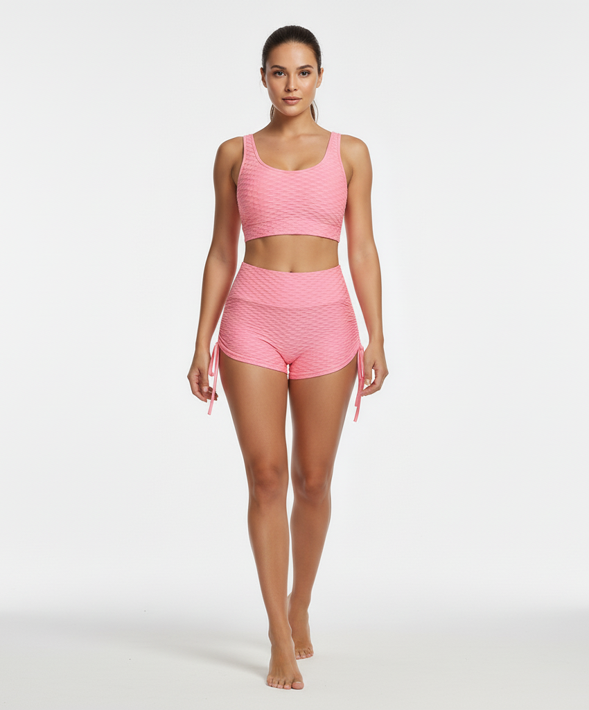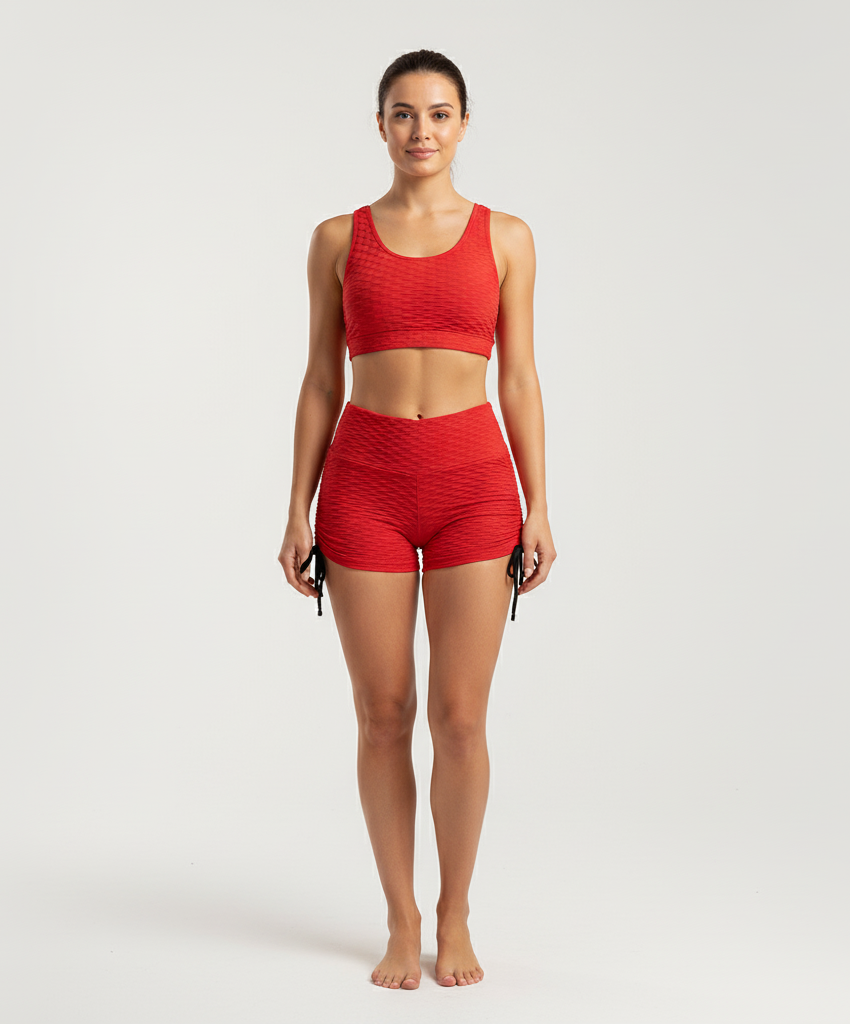 Crafted for discerning athletes, the Scrunch Textured Yoga Shorts fuse refinement and performance. The premium fabric blend—polyester, nylon, and Lycra—offers resilient stretch, shape retention, and a smooth, sculpting finish. The textured scrunch detail flatters the silhouette, while the discreet drawstring at the waist ensures a personalized, secure fit. Each pair embodies quiet luxury and enduring craft, designed to move from studio to street with timeless poise.