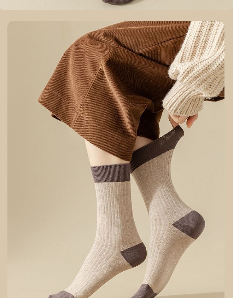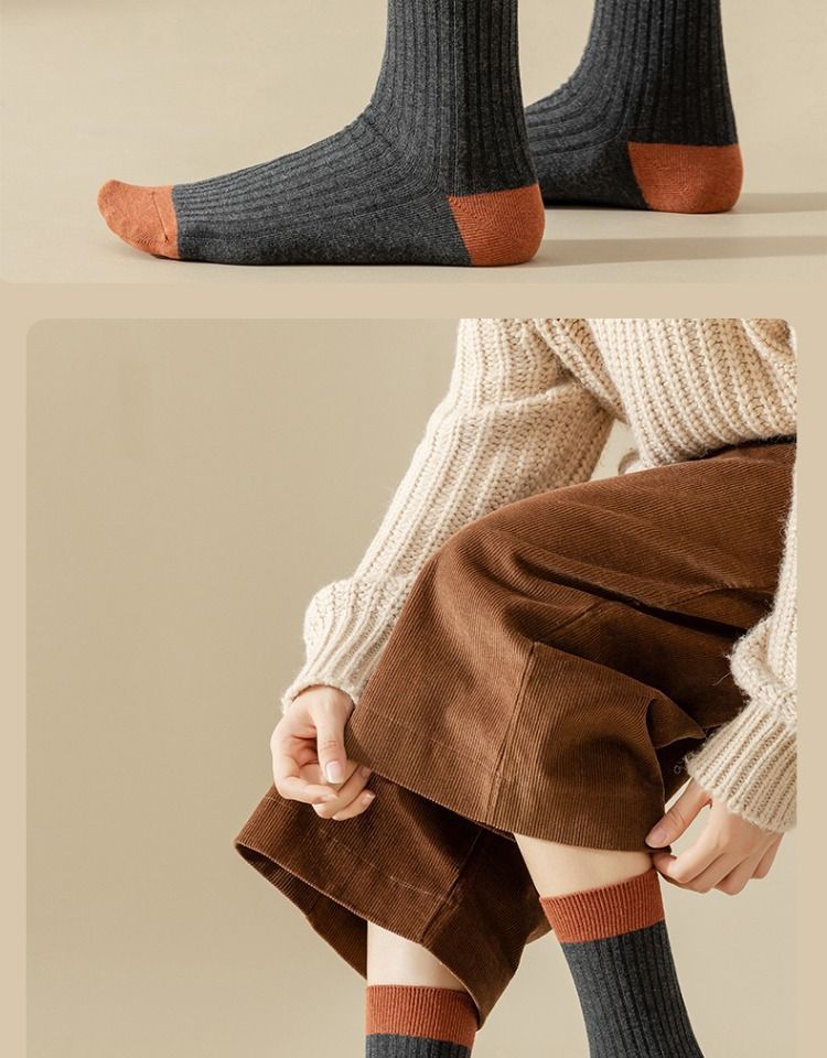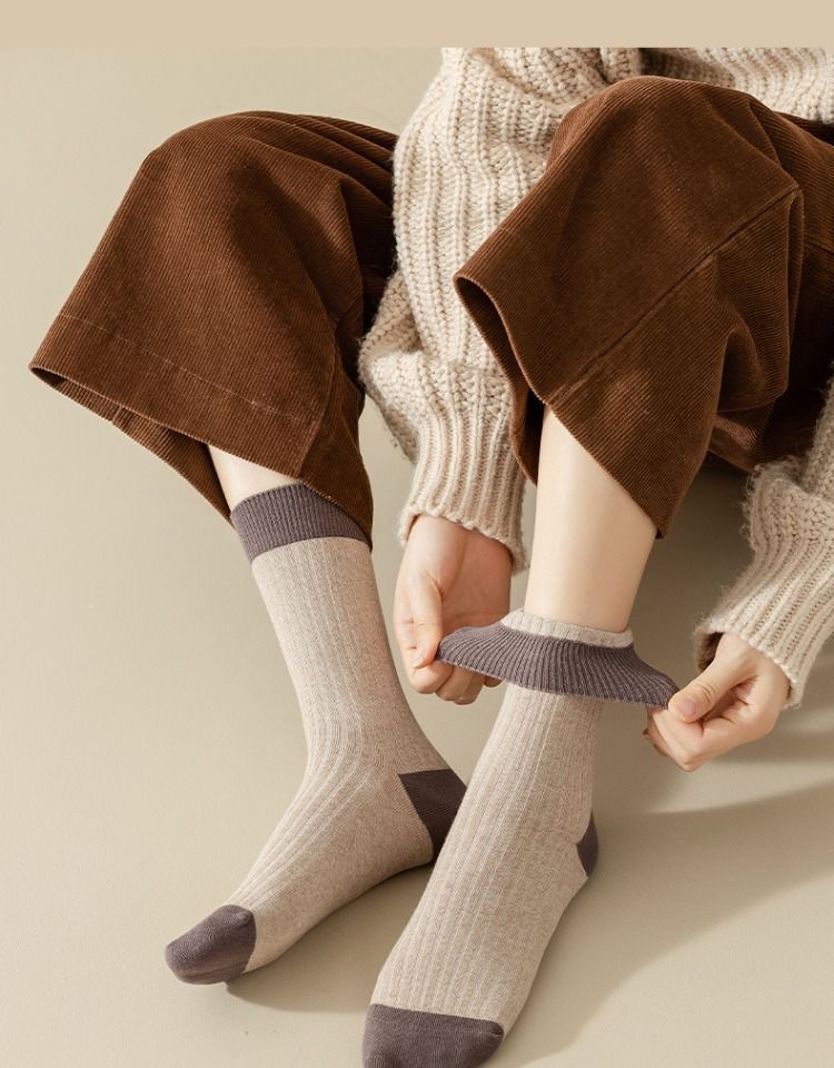 Women's Versatile Mori Mid-calf Contrast Color Bunching Socks
