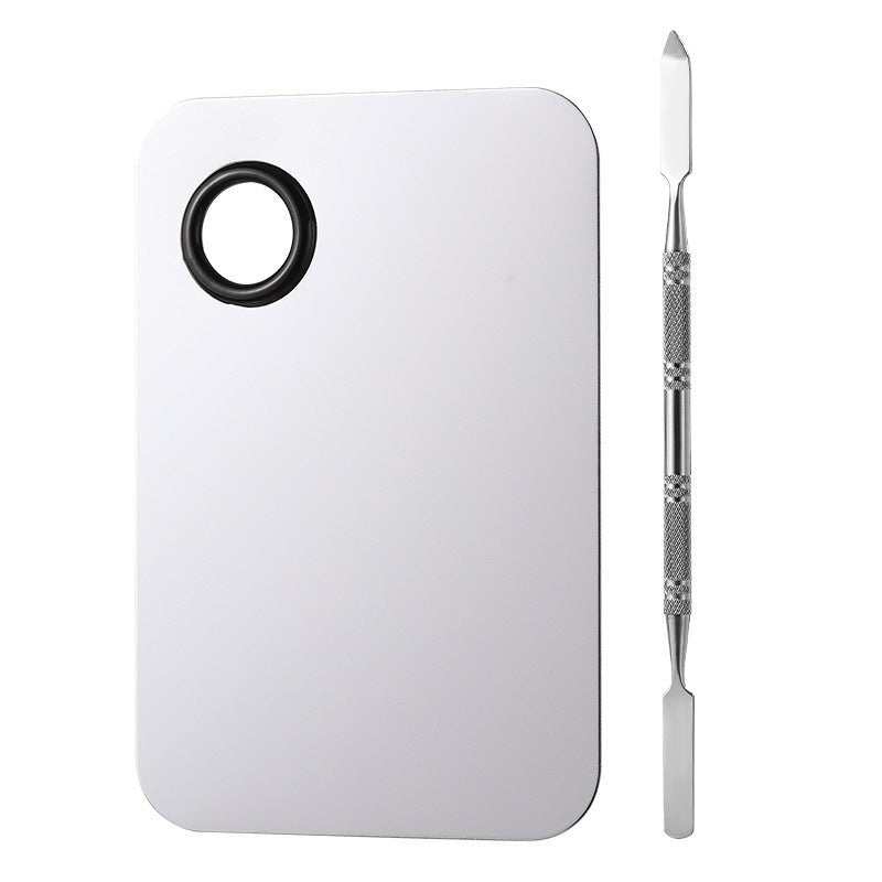 Stainless Steel Foundation Mixing Palette for Blending delivers studio-quality color mixing for flawless complexion work. This durable palette keeps your shades organized, clean, and easy to disinfect between sessions.