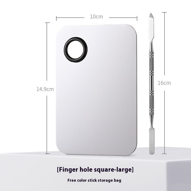 Choose from multiple palette configurations: color palette-small size two-piece set, color palette-medium size two-piece set, color palette-mini two-piece set, and color palette-large two-piece set. Each two-piece set combines a sturdy stainless steel base with precise blending surfaces to support smooth foundation blending and shade testing. The included color sticks stay close at hand, and a storage bag keeps your tools secure for fast, portable beauty tool setups.