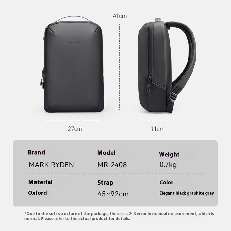 Designed for men, this solid-color backpack embraces urban-simplicity style in two refined tones—elegant black and graphite gray—perfect for work, study, and travel.