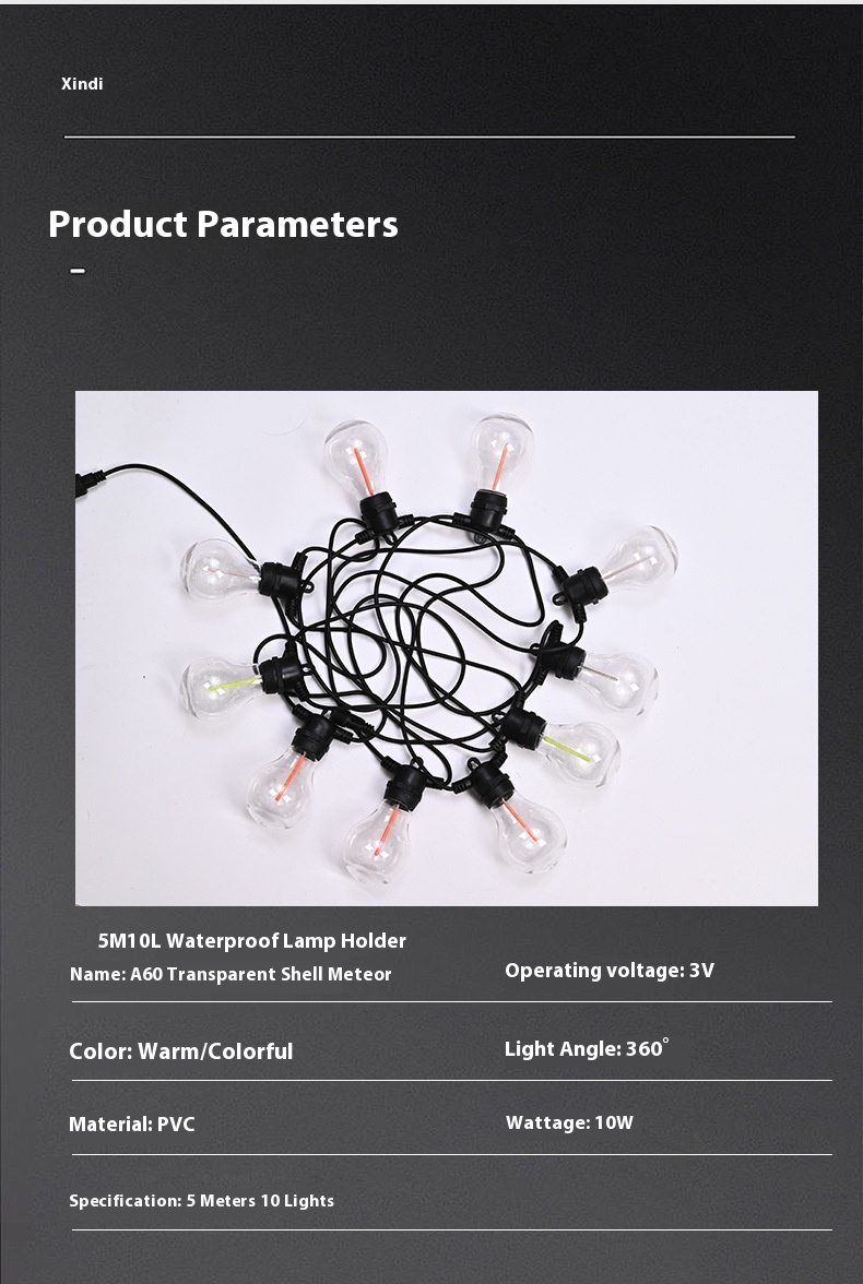 Specifications: 5 m 10 lights A60 transparent case Meteor (bagged)