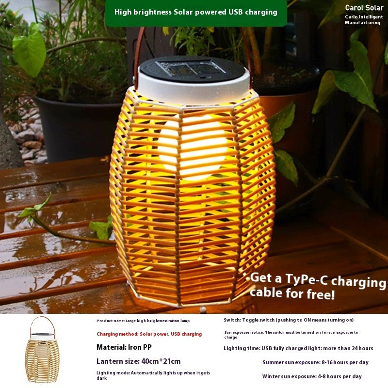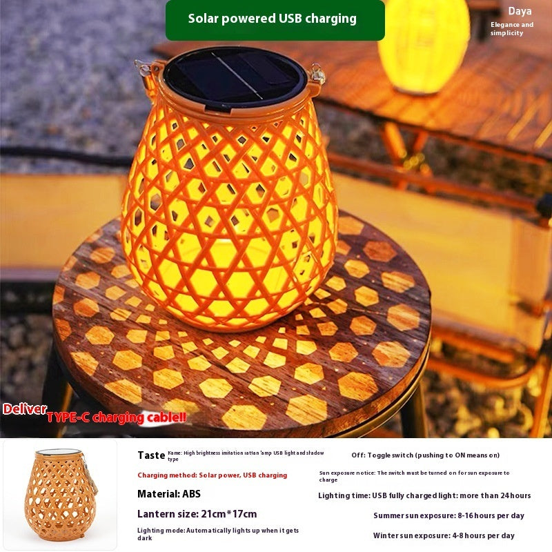 Solar Garden Decoration Bamboo Woven Candle Lights