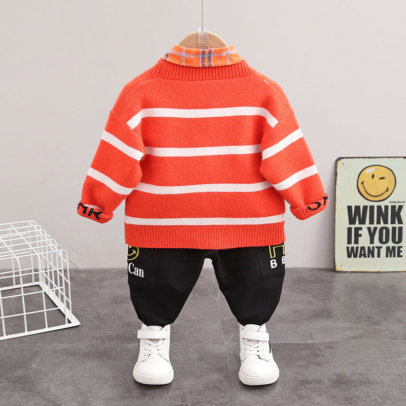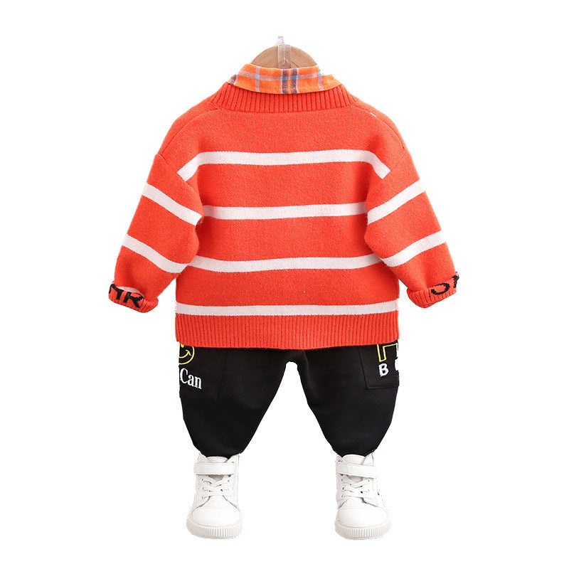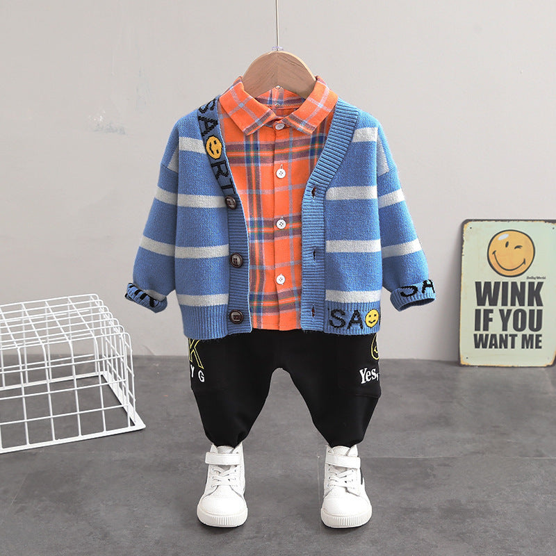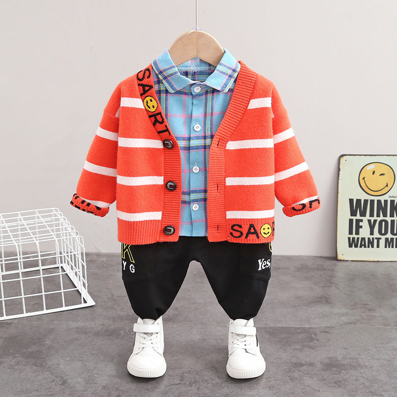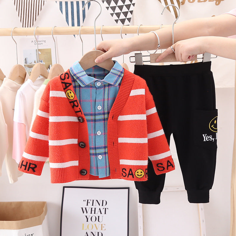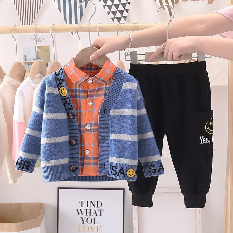Unisex Cotton Three-Piece Sweater Cardigan Set Regular Fit