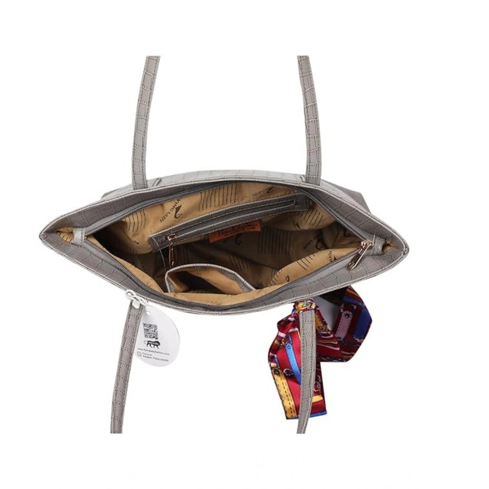 Generic Women's Polyurethane Textured, Croc Shoulder Bag (Grey)