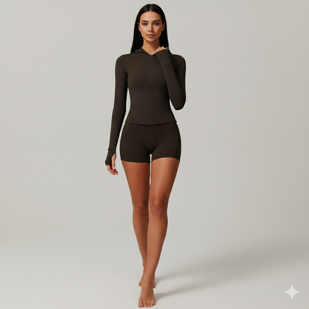 Women’s Zip-Up Hoodie Crop Top & High-Waist Shorts 2-Piece Set