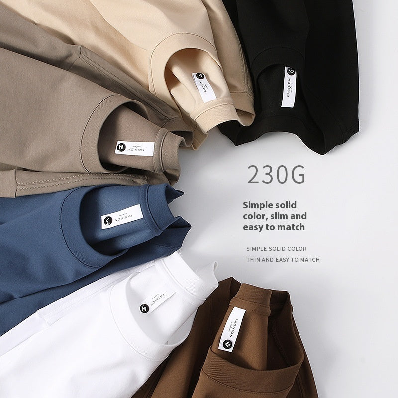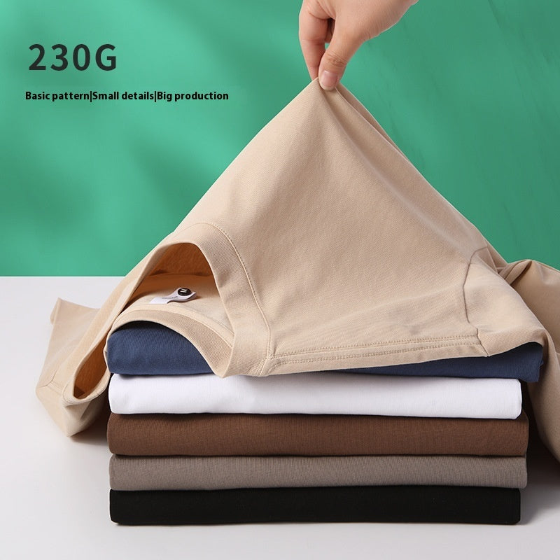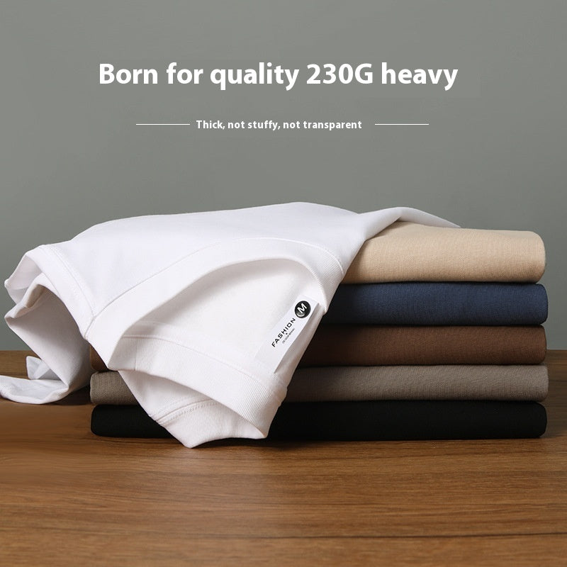 This 230g heavy cotton blend T-shirt offers a loose, comfortable fit with a round neck and drop shoulders.