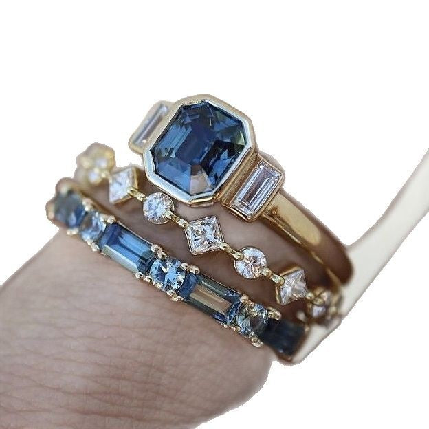 Women's Alloy Zircon Flower Ring Set Three Piece Jewelry delivers timeless elegance with a blue diamond sparkle. This three-piece flower ring set in alloy features an electroplating finish for a durable, sophisticated shine, designed for women who love delicate, versatile jewelry.