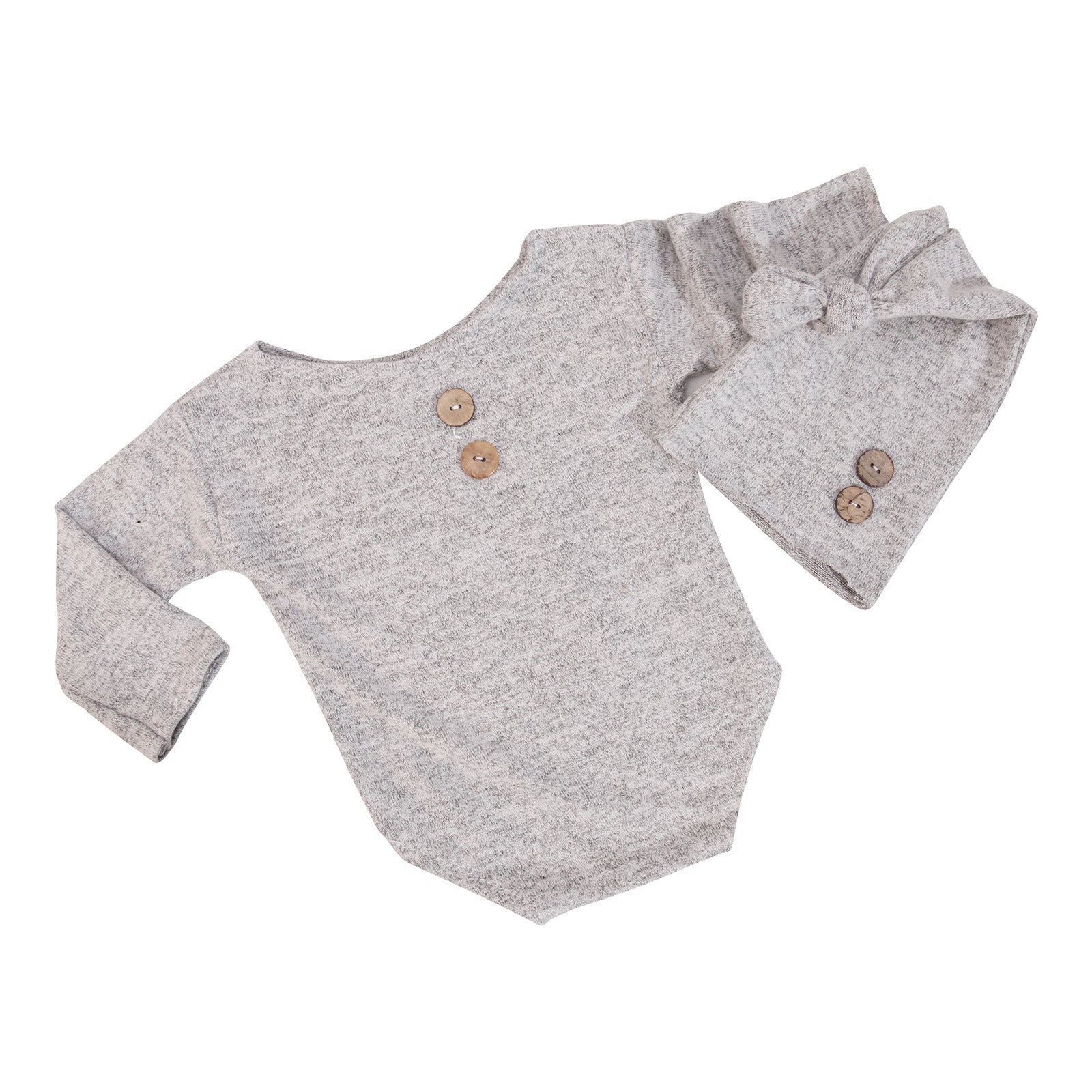 Available in pure color options to match any theme—black, light grey, light purple, dark purple, dark grey, and coffee—this hat-and-bodysuit pairing adds charm to every portrait.