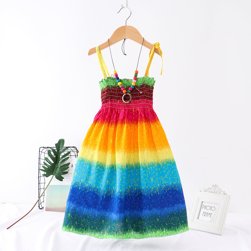 The Girls Floral Cotton Sling Vest Skirt Set Regular Fit adds fresh charm to her wardrobe. Made from soft cotton, this coordinated set pairs a breezy sling vest with a comfortable matching skirt, all dressed in a cheerful floral print. Choose from colors like green, purple, rainbow, color bars, green bars, blue, and color flowers to suit every mood.