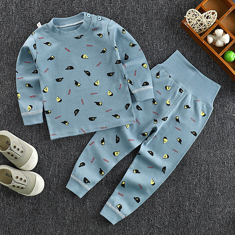 Kids High Waist Cotton Blend Pants Set Regular Fit Unisex