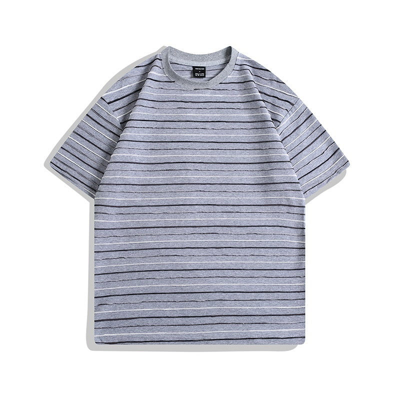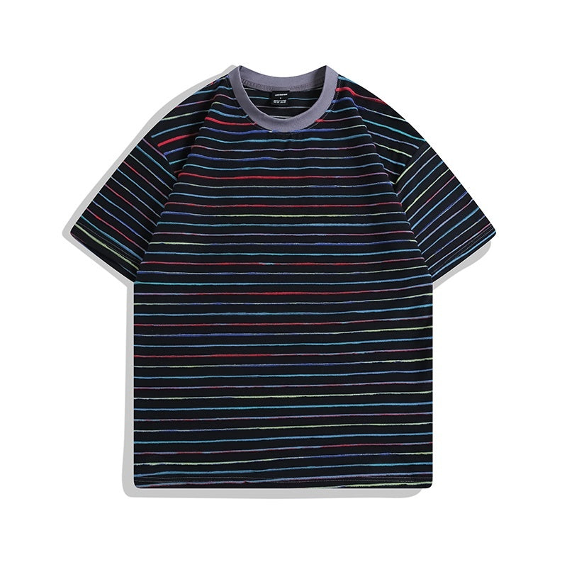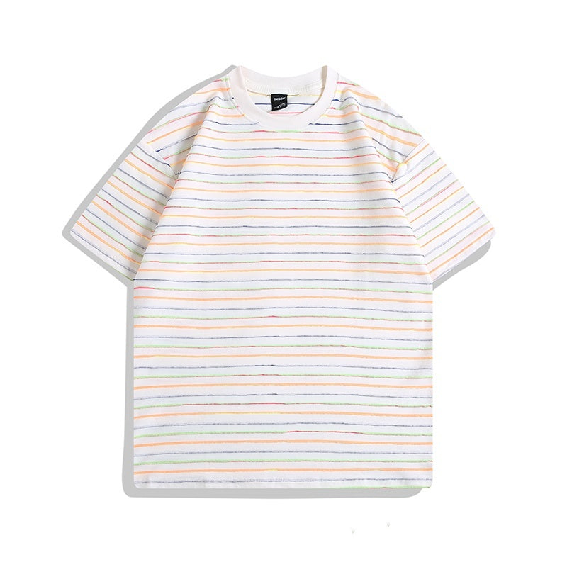 Unisex Cotton Relaxed Fit Color Striped Short Sleeve Tee