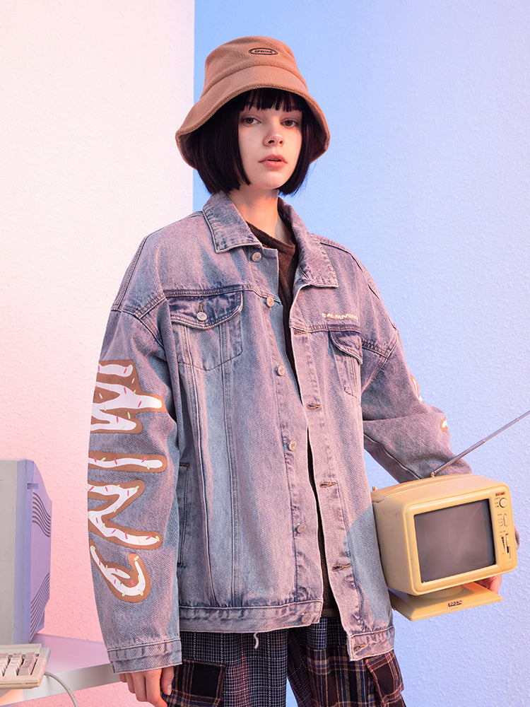 Relaxed Denim Jacket Cotton Poly Blend Unisex Casual Coat