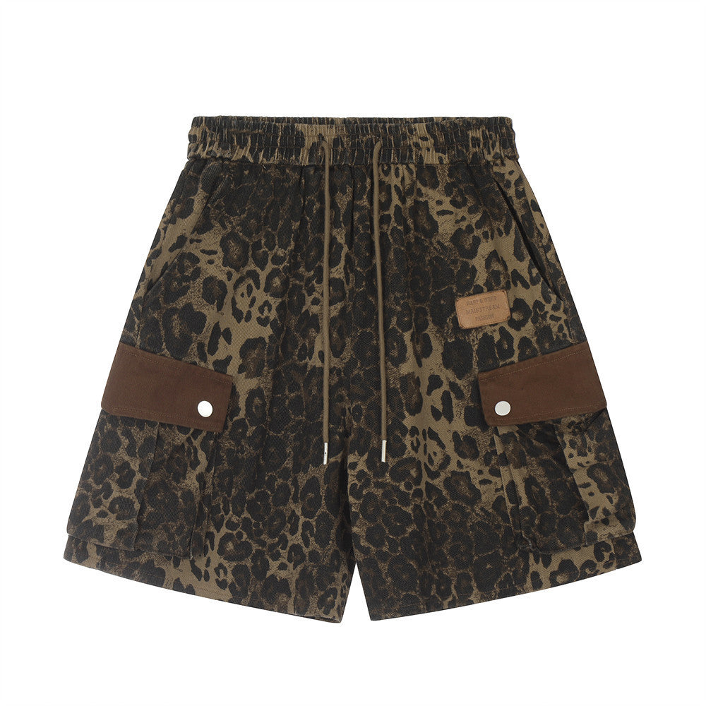 Elevate your casual wardrobe with Men's Leopard Print Cargo Shorts, a cotton streetwear essential designed for youth. The khaki leopard-print shorts blend bold style with everyday comfort for any leisure outing, making them a versatile choice for weekend adventures.