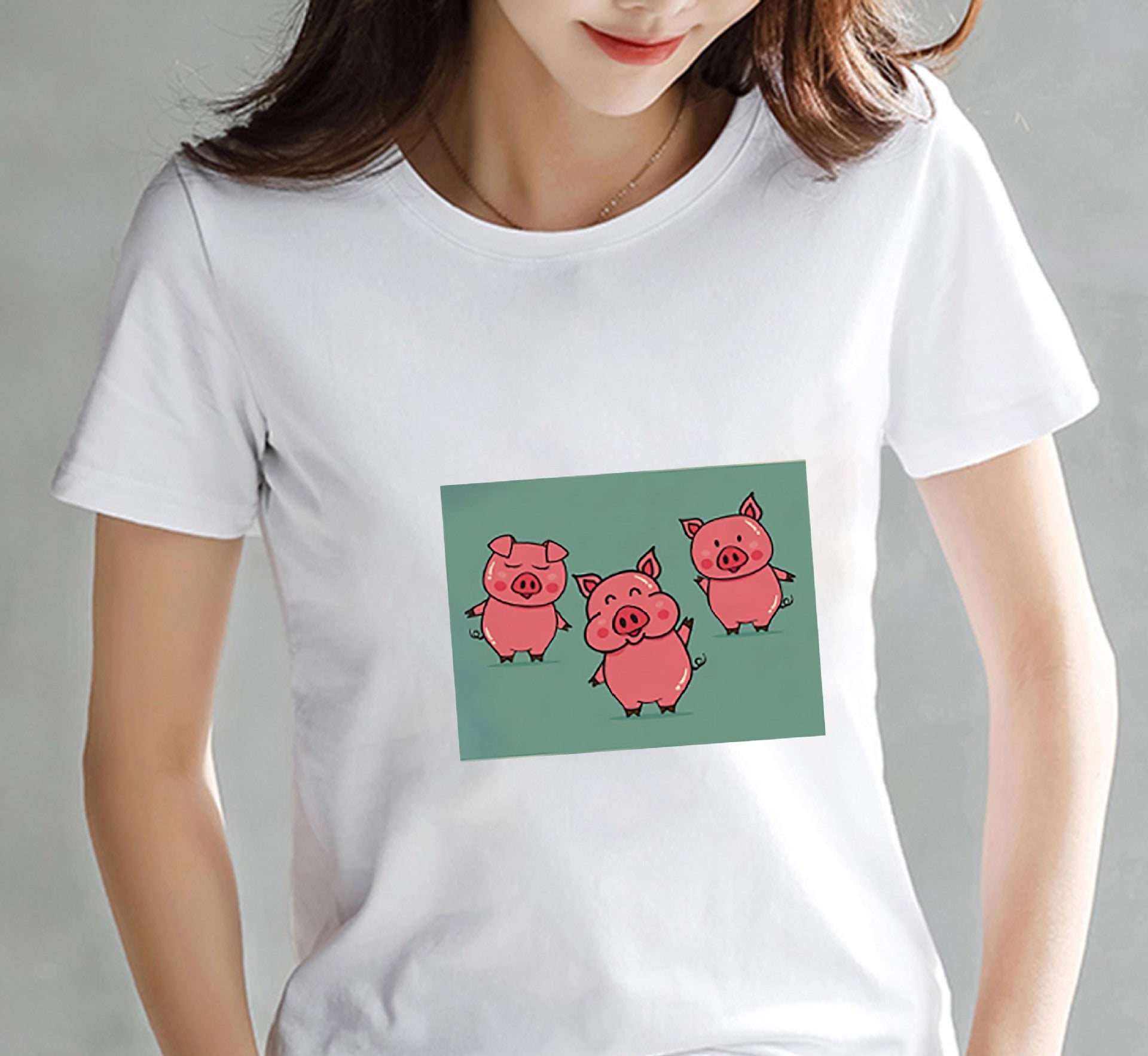 Women's Relaxed Fit Printed Polyester Tee Pig Pattern