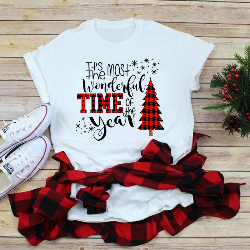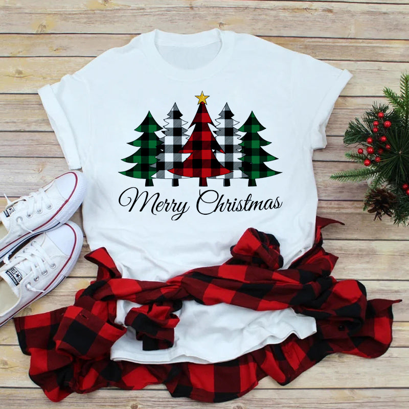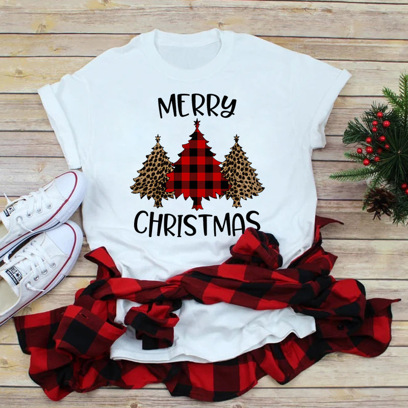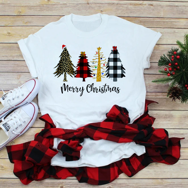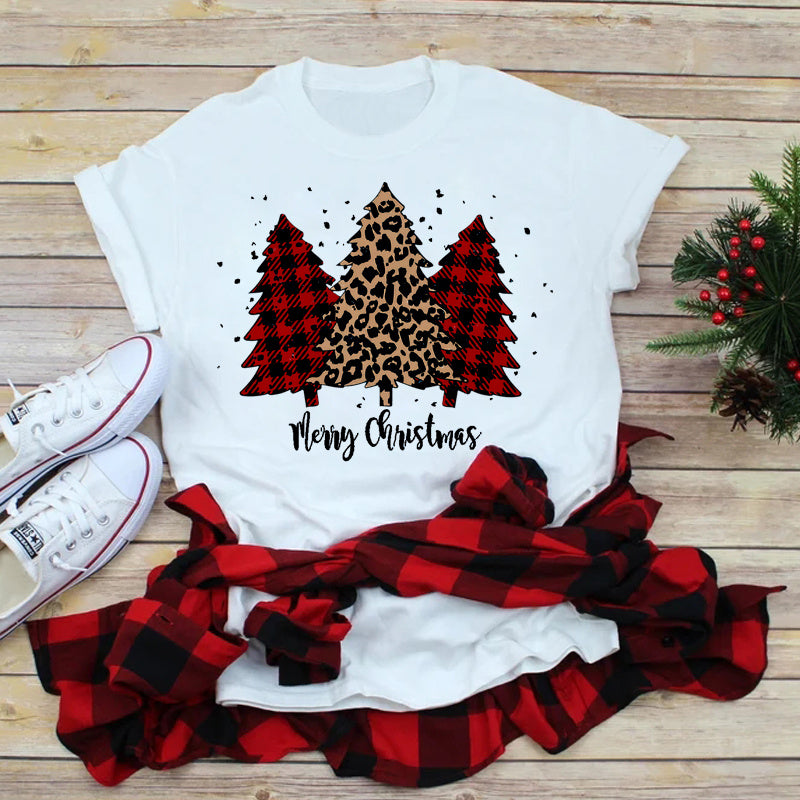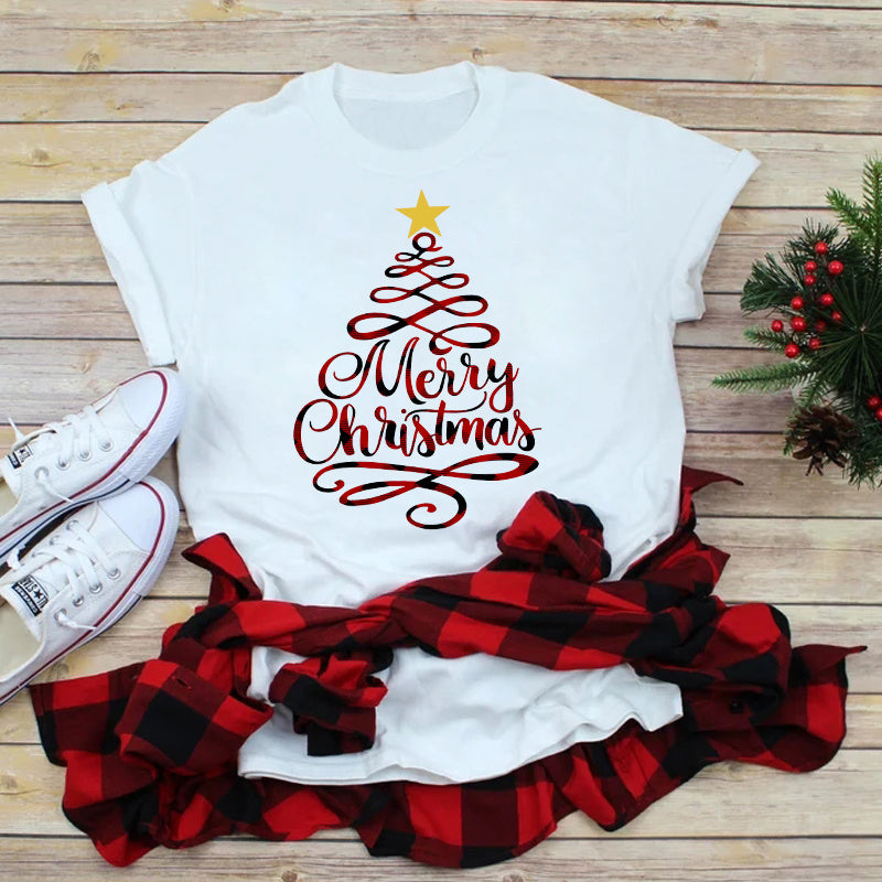 Foreign Trade Christmas Tree T-shirt Men And Women Red
