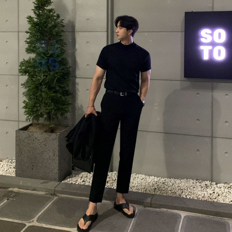 Discover the Unisex Half Turtleneck Knitted Tee Viscose Slim Fit — a versatile essential for warm-weather styling. This slim-fit half turtleneck tee is crafted from breathable viscose fiber and comes in black or blue.