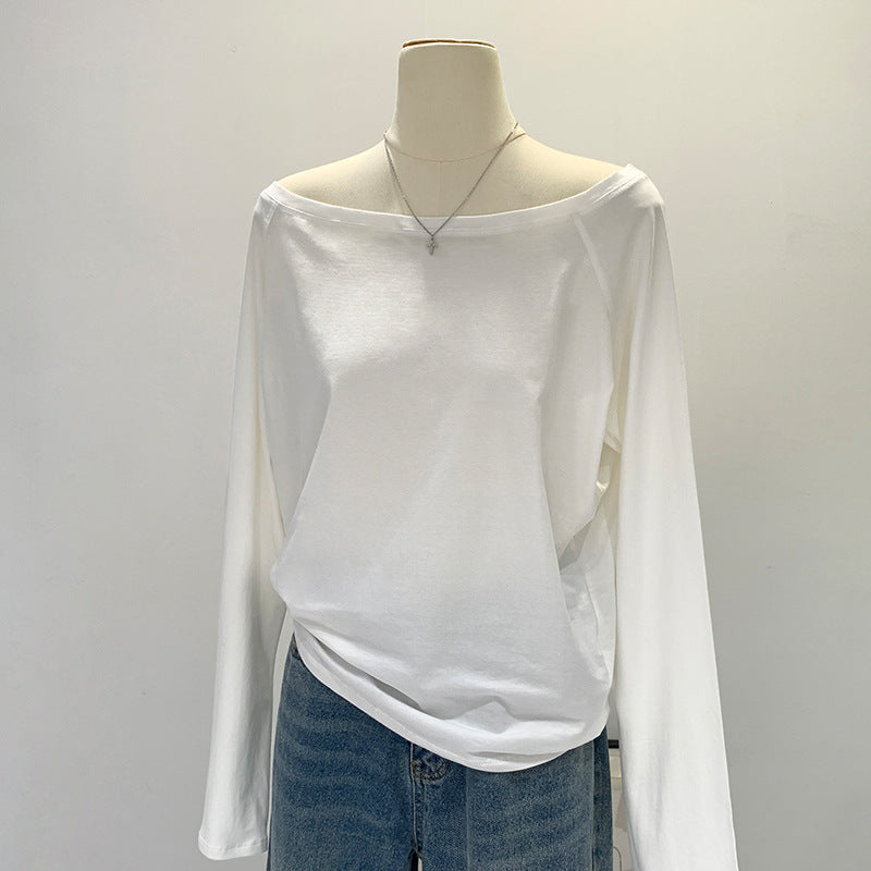 Women's Off-Neck Oblique Shoulder Cotton Top Loose Fit