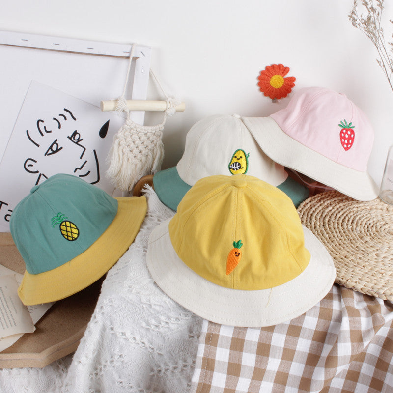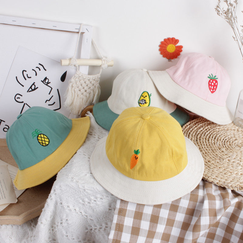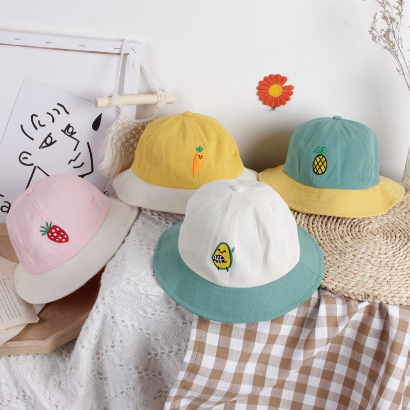 Unisex Kids Cotton Embroidered Fruit Fisherman Hat