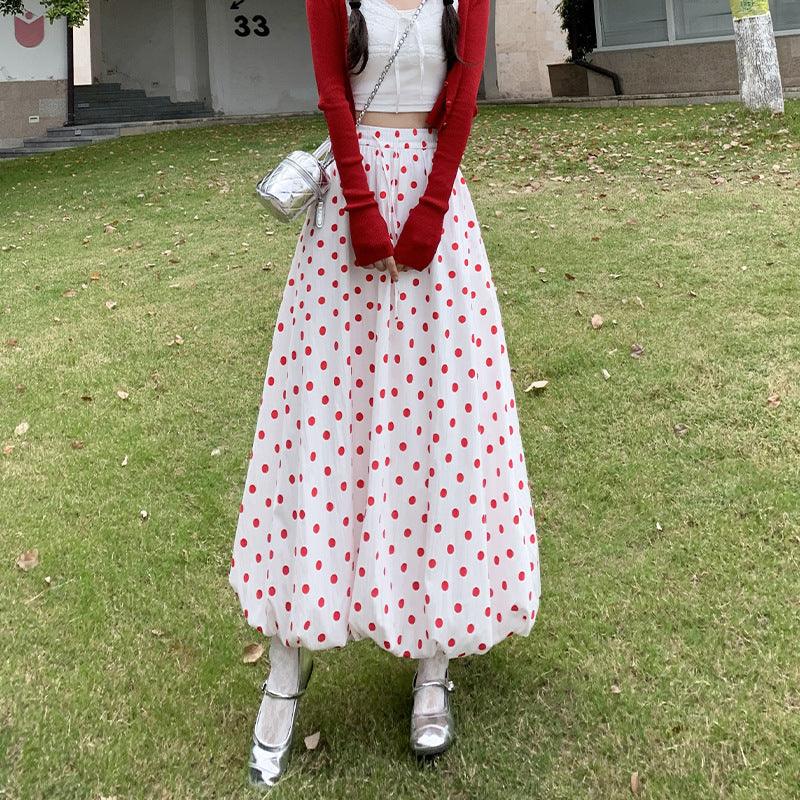 Red Polka Dot Retro Skirt – Women’s High Waist Polyester Vintage Style Skirt