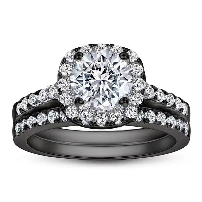 Geometric White Black Alloy Women's Engagement Ring Set is a bold, modern choice for everyday elegance. Crafted from a durable alloy and finished with white and black electroplating, the rings showcase sleek geometric lines that suit both minimalist and statement looks. Inspired by European and American design, this set delivers versatile styling for engagements, anniversaries, or chic daily wear. The dual-tone finish adds versatility across outfits and metals, making it easy to pair with other jewelry.